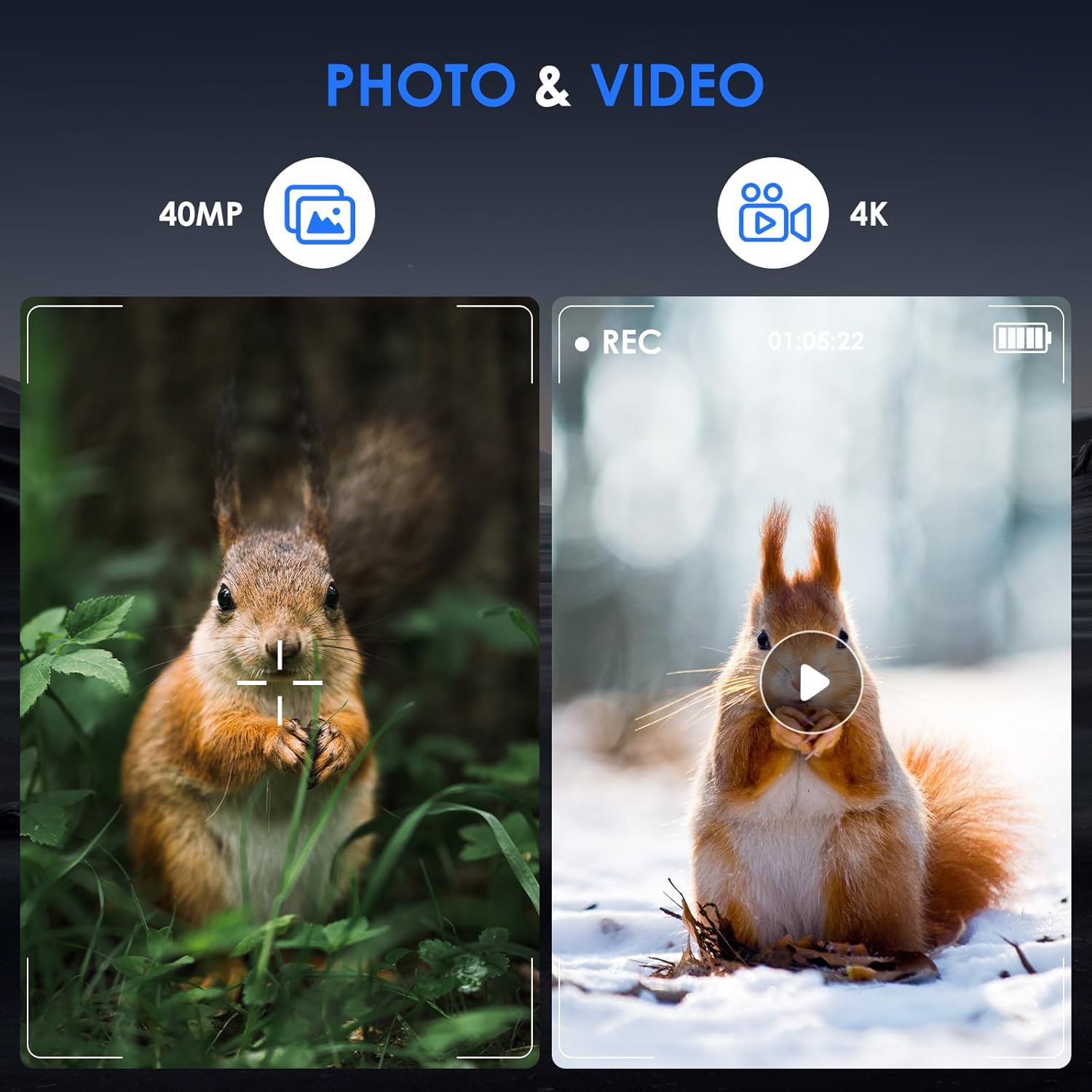 - 【Versatile Capture & Display】This night vision camera supports both photo and video recording, and features a 2.4-inch HD display with three adjustable brightness levels—delivering clear viewing and easy operation in any lighting condition.