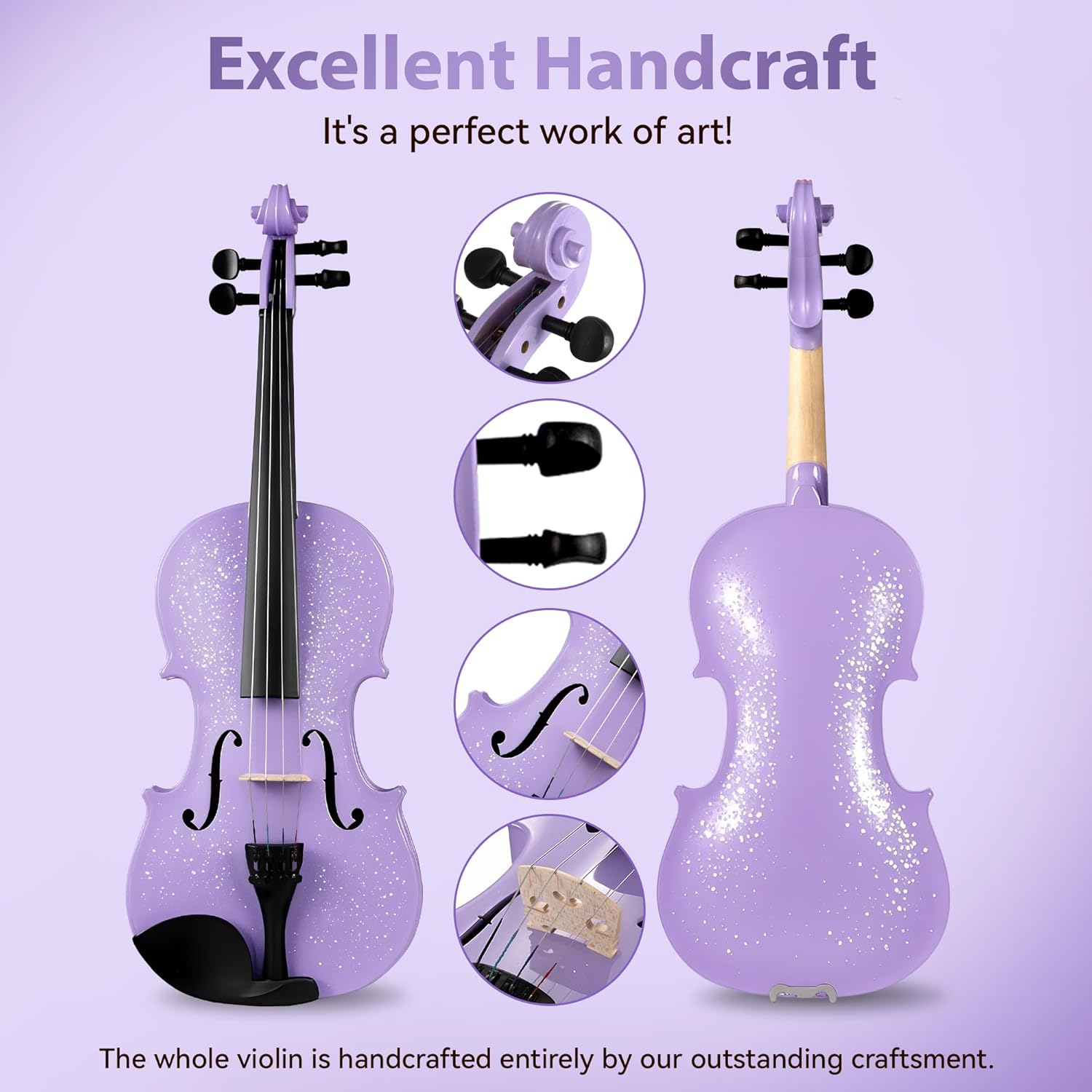 - 🎼【Elegant Design】: Poseidon always committed to manufacture of high-end beginner violins, the purple violin 4/4 size is made of spruce wood panel, maple back board, neck and side plate with glossy purple color with starry sky. Along with an solidwood fingerboard, pegs, pegged chin rest, violin bows and an alloy tailpiece with 4 built-in fine tuners. Additional, the whole violin is handmade entirely by our outstanding crafters. It's a perfect work of art!