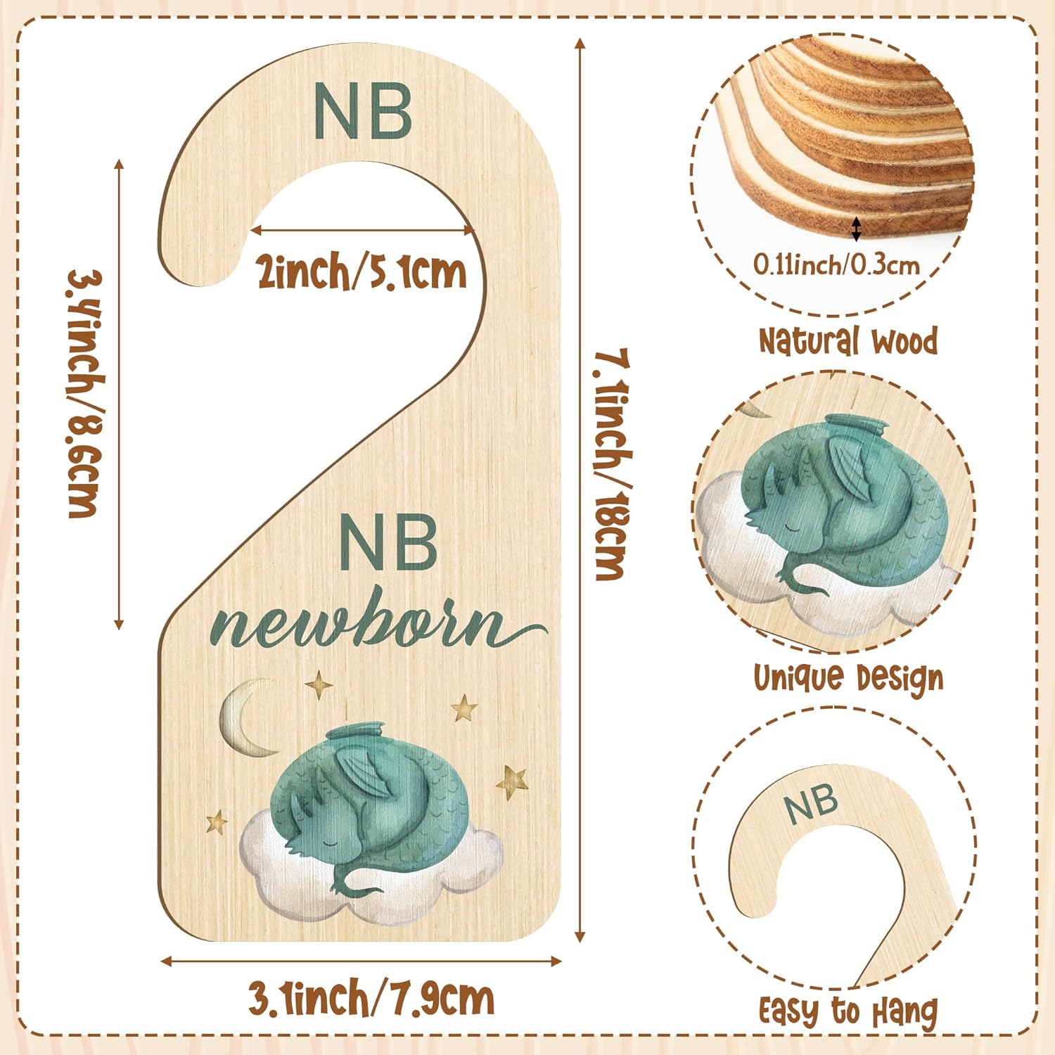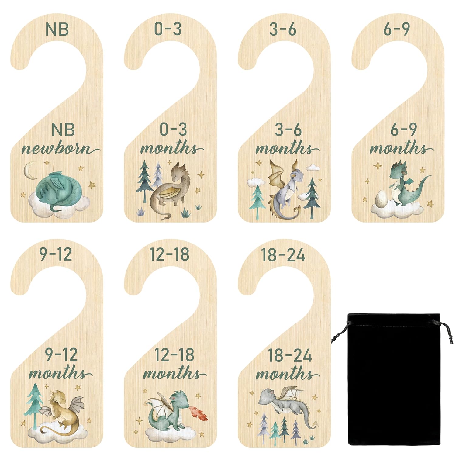 R HORSE Wooden Baby Closet Dividers - 8Pcs Dragon Baby Closet Organizer, Double-Sided Newborn Clothes Size Hanger Dividers, Nursery Decor Birthday Gift for Boy Girl (0-24 Months)
