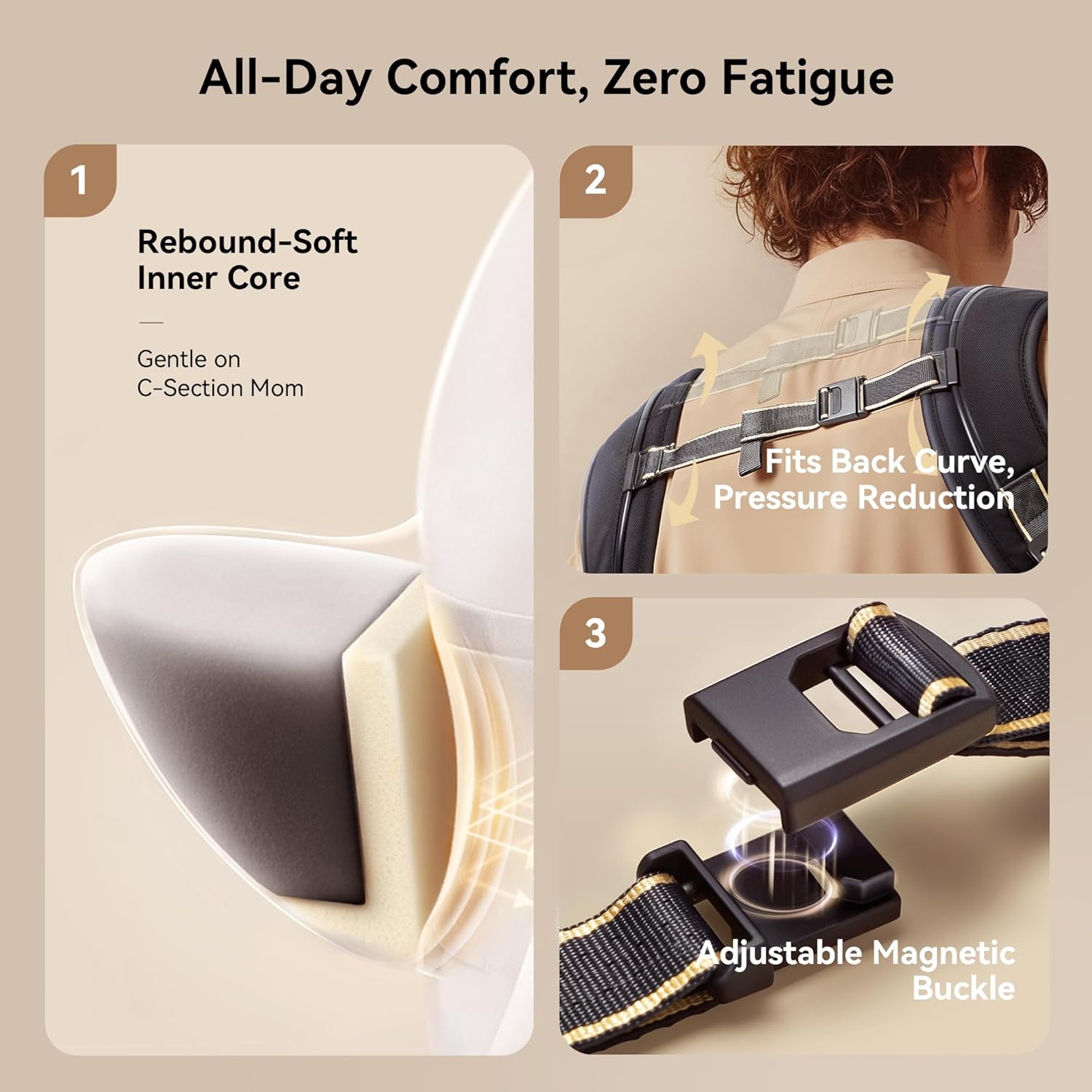 - Effortless One-Person Operation: Innovative magnetic buckles and quick-adjust straps allow for secure, independent use. The H-shaped design with 3" widened shoulder straps and Velcro waistbelt ensures a perfect fit in seconds - ideal for busy parents