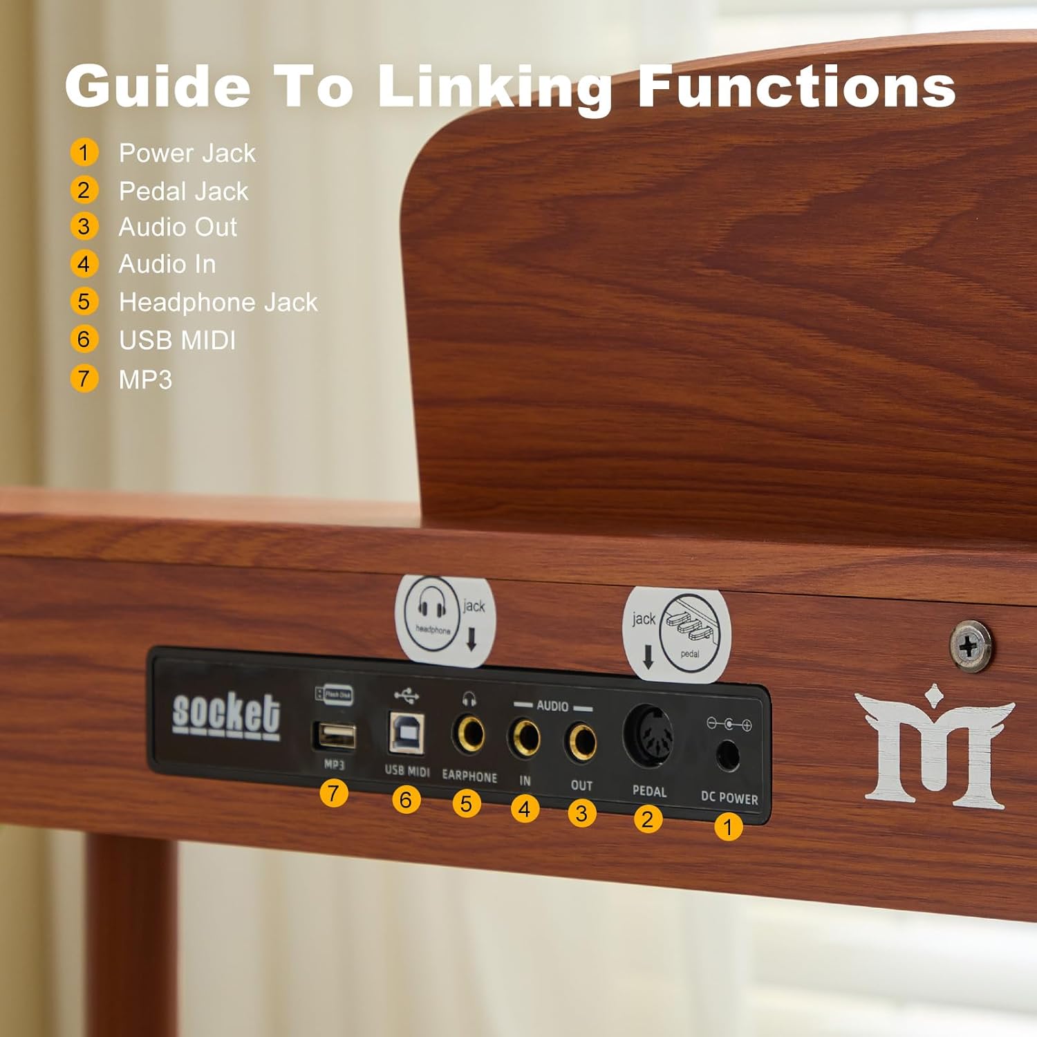 - 【Complete Kit & Portable Design】The MUSTAR electric piano includes a power adapter, removable music stand, three-pedal unit, and instruction manual—everything you need to start playing. Lightweight and compact, it’s easy to move and store, perfect for small spaces or on-the-go musicians.