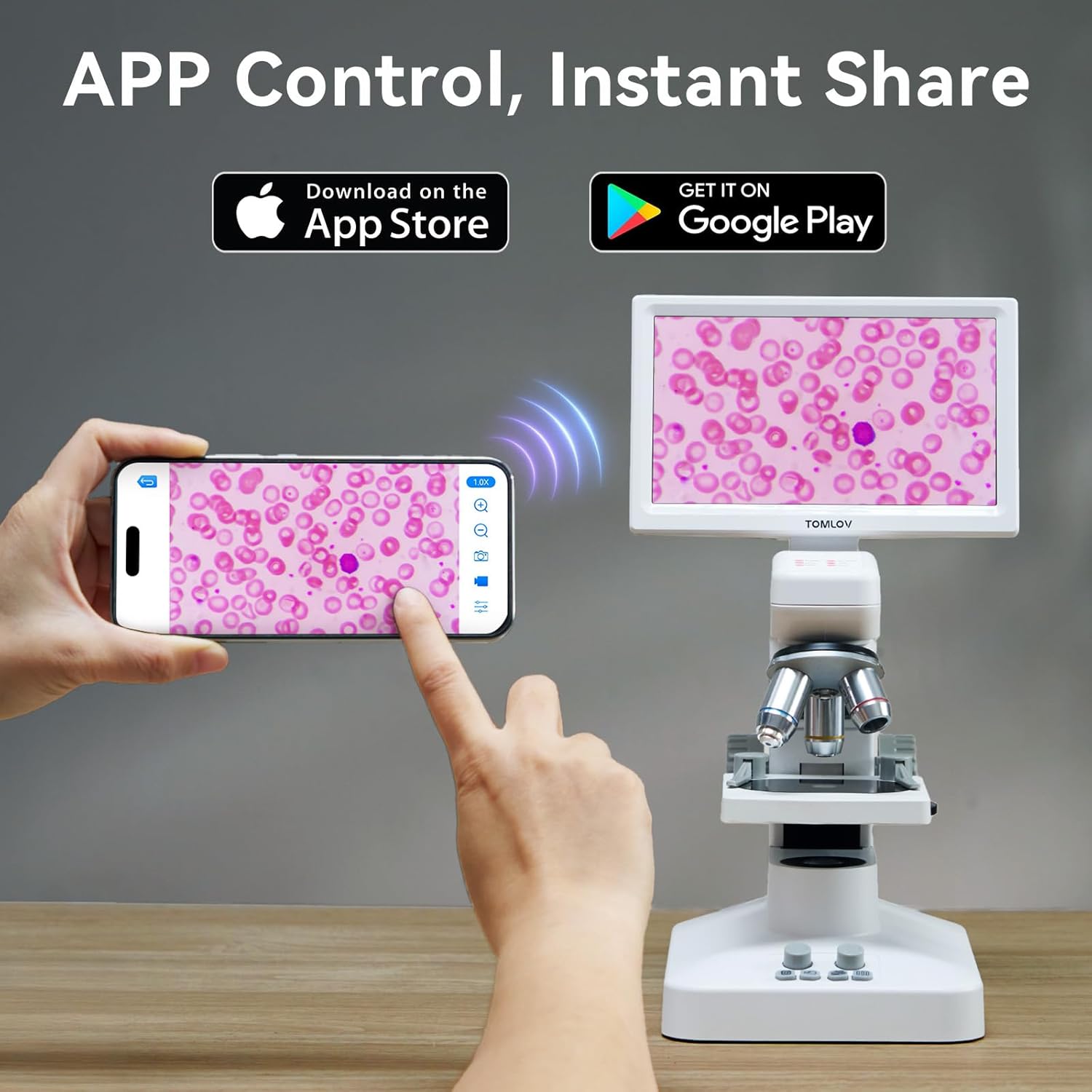 TOMLOV DM301 Pro Microscope for Kids Adults Students, Digital Microscope with 7" Screen, USB & HDMI Output, Wireless Biological Educational Science Scope Camera with Slides Kits for Classroom Home Lab