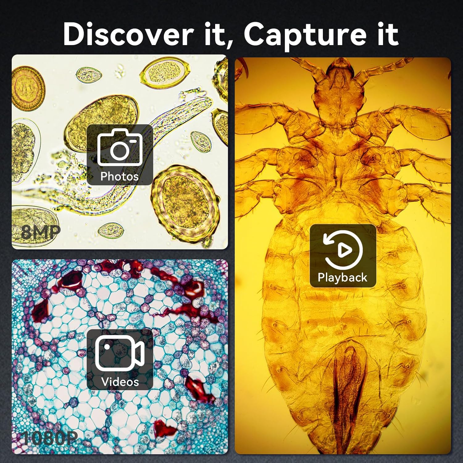 - Capture 8MP Photos & 1080P Videos: Merging high-resolution imaging with microscopy, the built-in camera captures every vivid detail—far beyond what regular electronic microscope can show, making learning both exciting and memorable