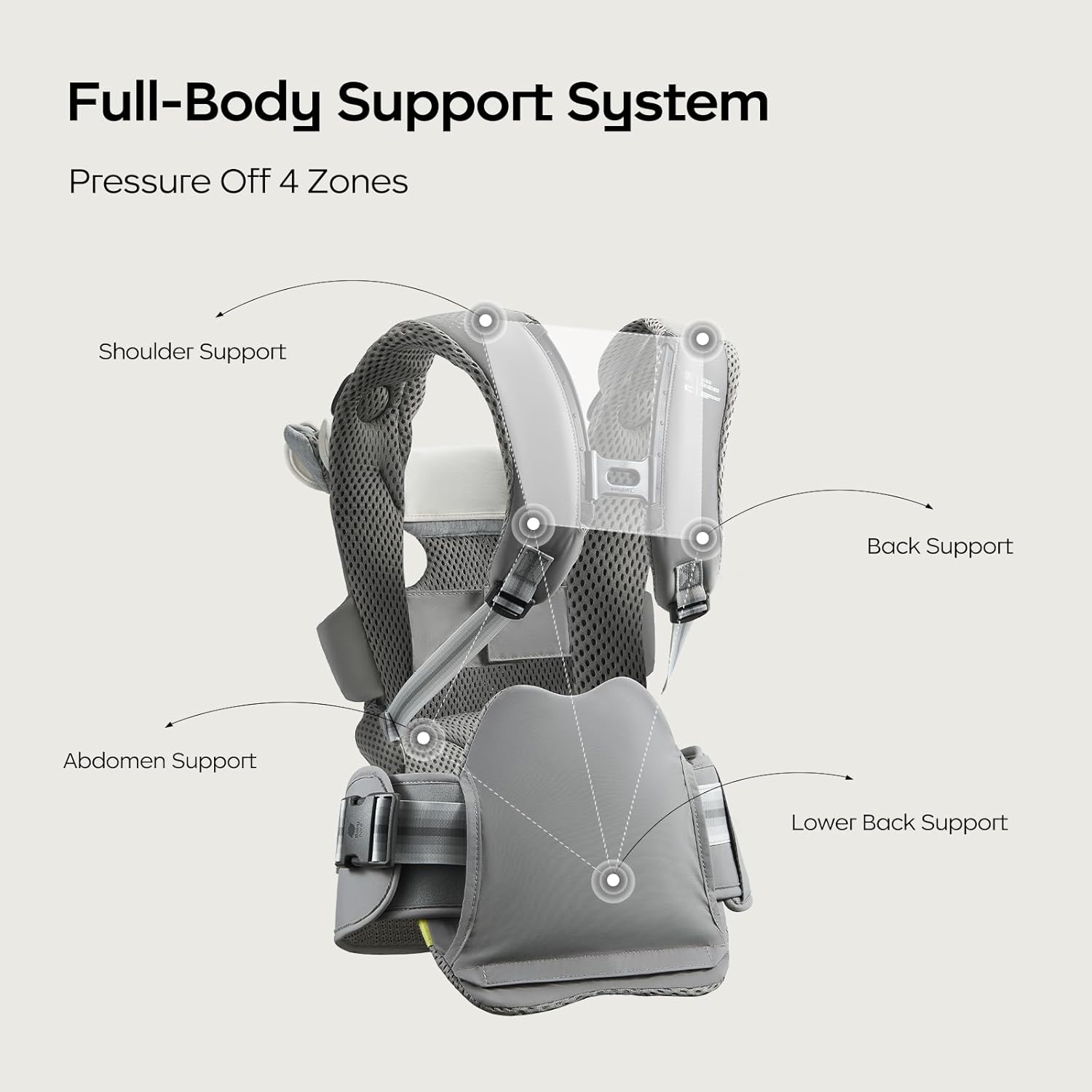 - Full-Body Support System: Evenly distributes baby's weight to reduce strain on shoulders, back, and waist by 33%, providing extra comfort and lowering the risk of long-term musculoskeletal issues