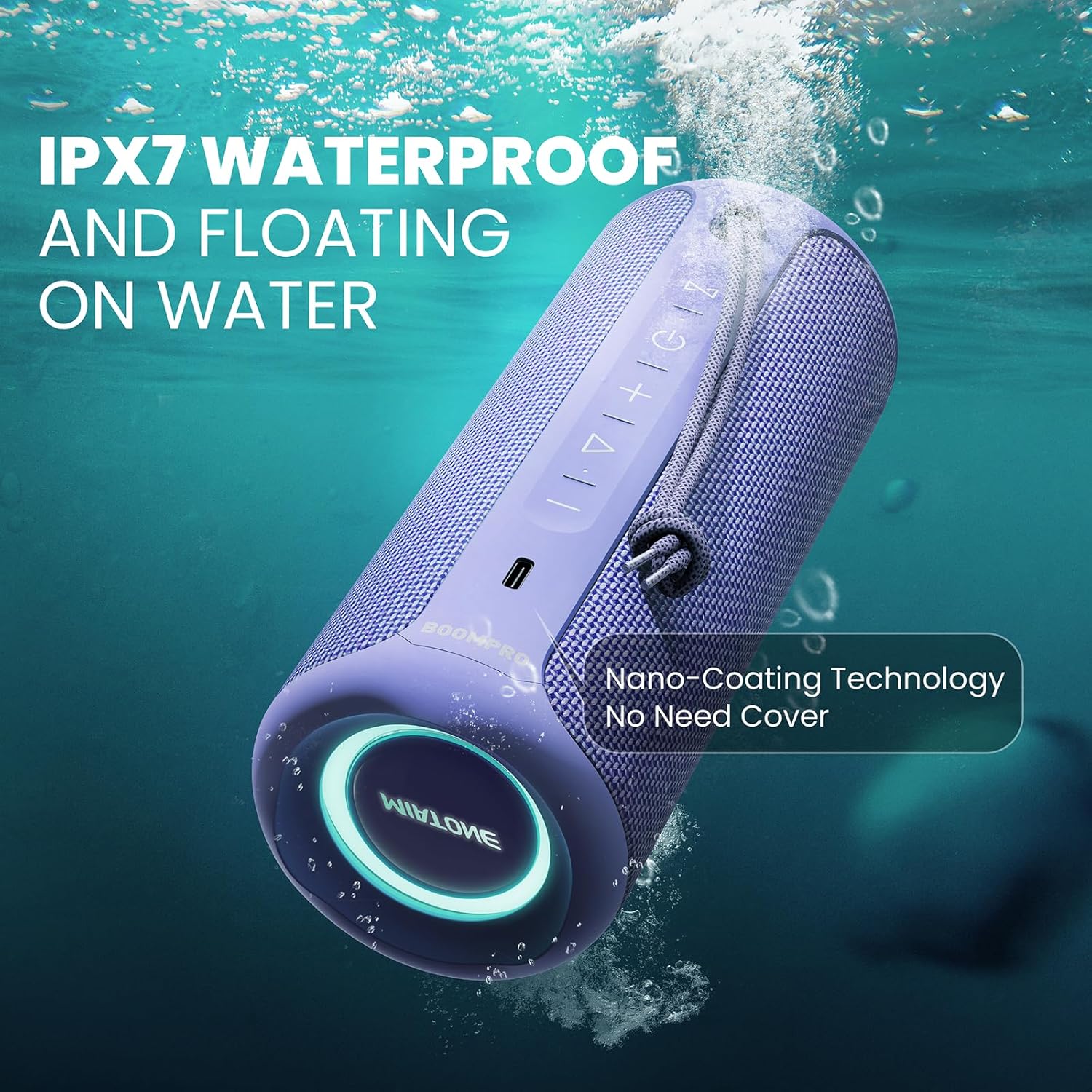 - [IPX7 WATERPROOF WIRELESS SPEAKER] Take your music anywhere with confidence thanks to our MIATONE bluetooth speakers portable wireless's IPX7 waterproof rating. This rugged and durable speaker can withstand rain, splashes, and even brief submersion in water, making it the perfect companion for outdoor adventures, beach and pool parties.