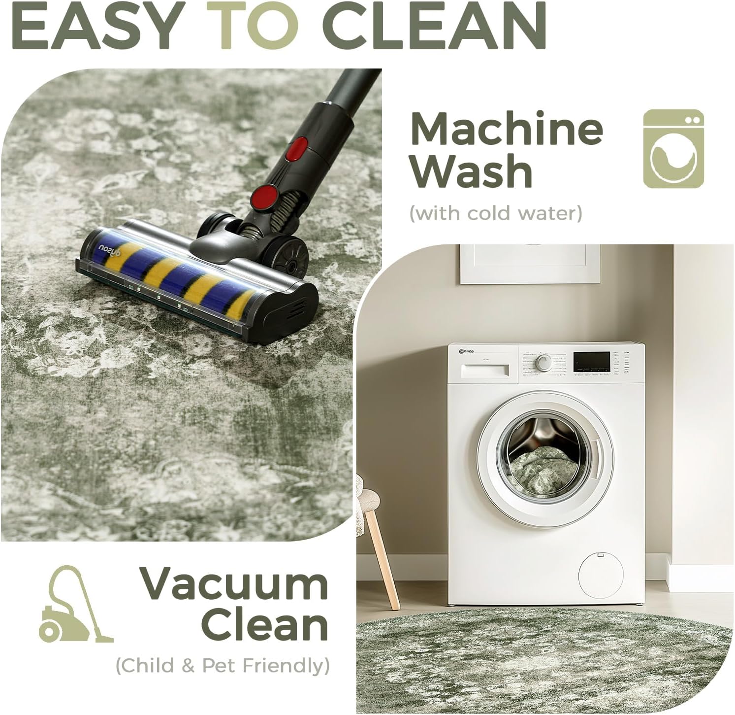 - Easy to Clean:With its stain resistant and easy to clean surface, Jinchan rug requires only minimal effort to keep it looking its best.Please try to Machine wash or vacuum regularly.Use a handheld small vacuum cleaner to remove the dust or hair for daily care. Machine wash with cold water on gentle cycle