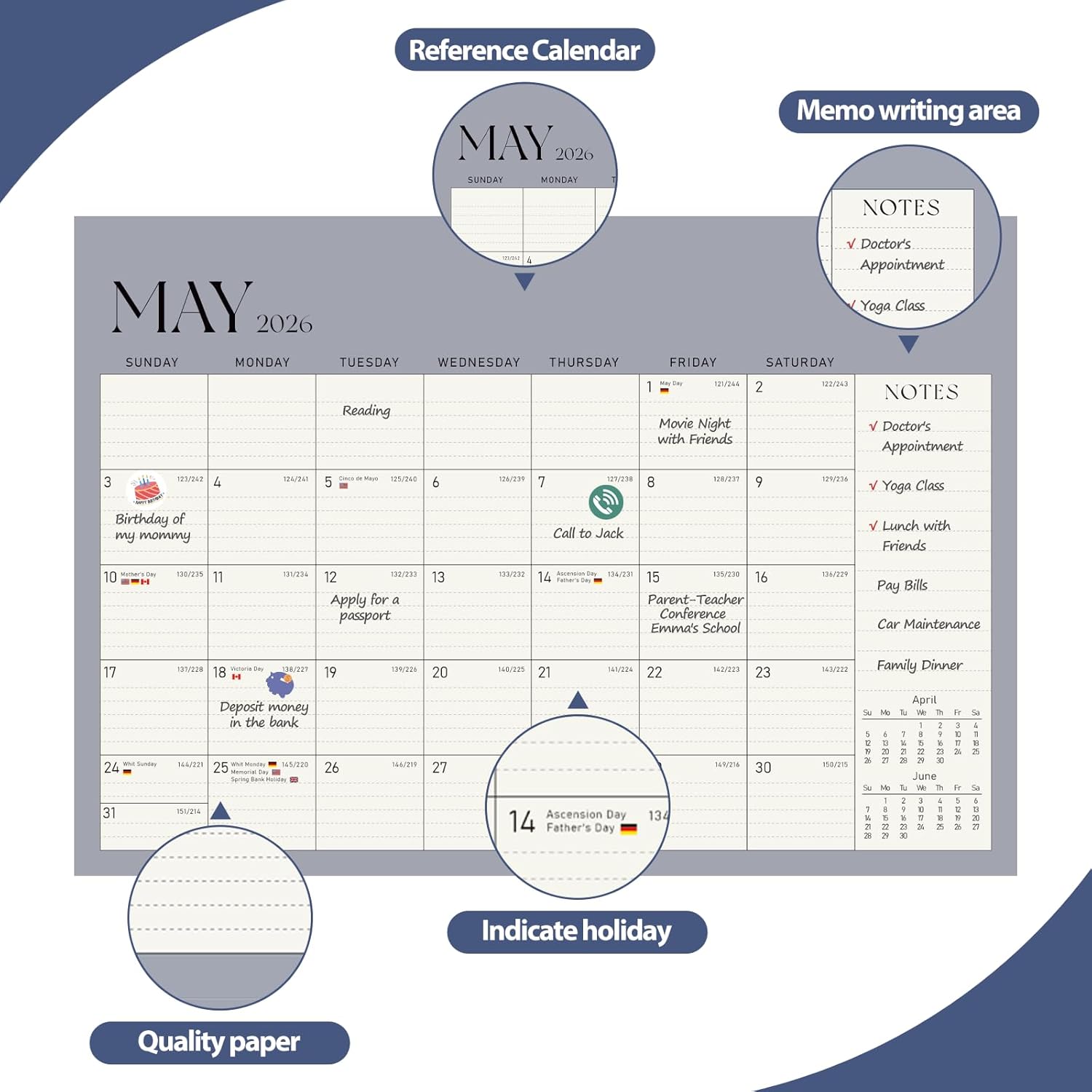 - [IMPORTANT DATES COVERAGE] -Our calendar covers all important holidays and events, ensuring that you can plan ahead effectively. With its large size of 17*12 inches, this calendar provides ample writing space as well.