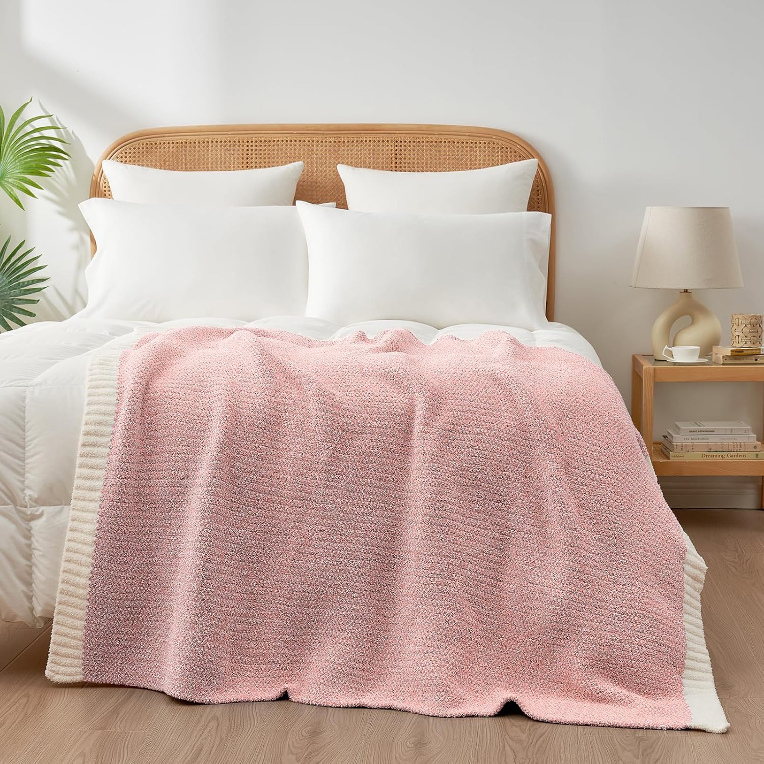 Snuggle Sac Buttery Pink Throw Blanket for Couch, Reversible Super Soft Knitted Blankets, Warm Cozy Knit Fuzzy Plush Lightweight Throws Dupes for Sofa, Bed, Picnic, Pink, 50 x 70 inches