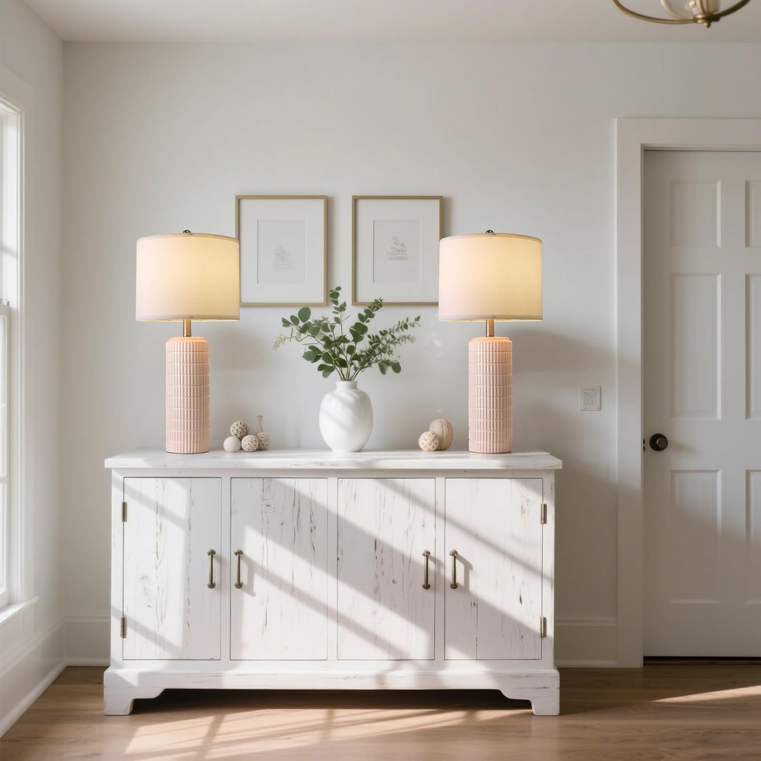 - INSTALLATION REQUIRED FOR LAMPSHADE: To minimize unnecessary packaging waste, we have sought out the most efficient packing method, allowing you to buy high-quality items at a more affordable price. The light pink lamps comes with all installation accessories in the package. Following the instructions, you can set up the ceramic table lamps easily.
