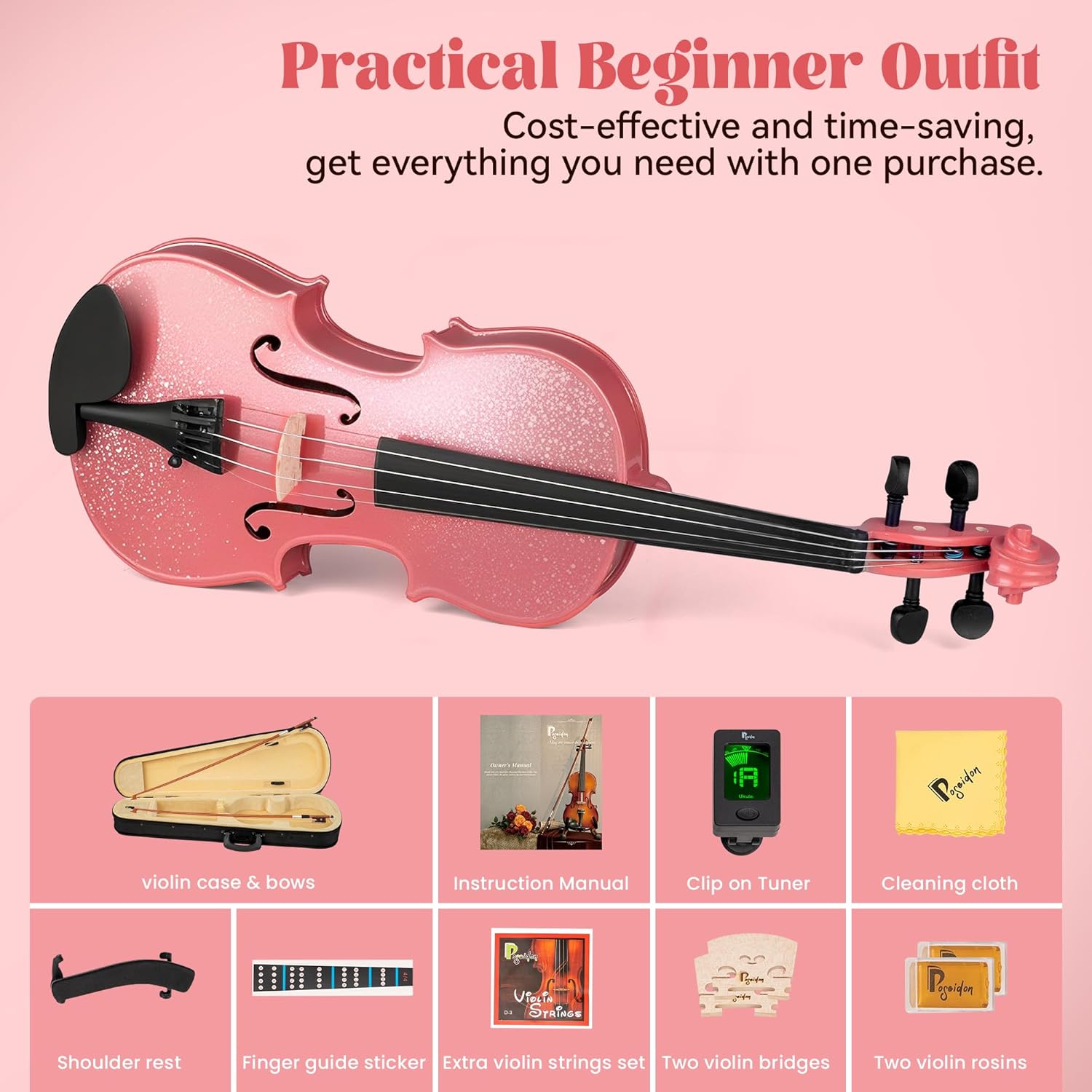 Poseidon Violin 4/4 Violin for Beginner, Girls Violin with Premium Solidwood Spruce Top with Hard Case, Extra Bows, Extra Strings, Shoulder Rest, Rosin, Clip-on Tuner, Manual