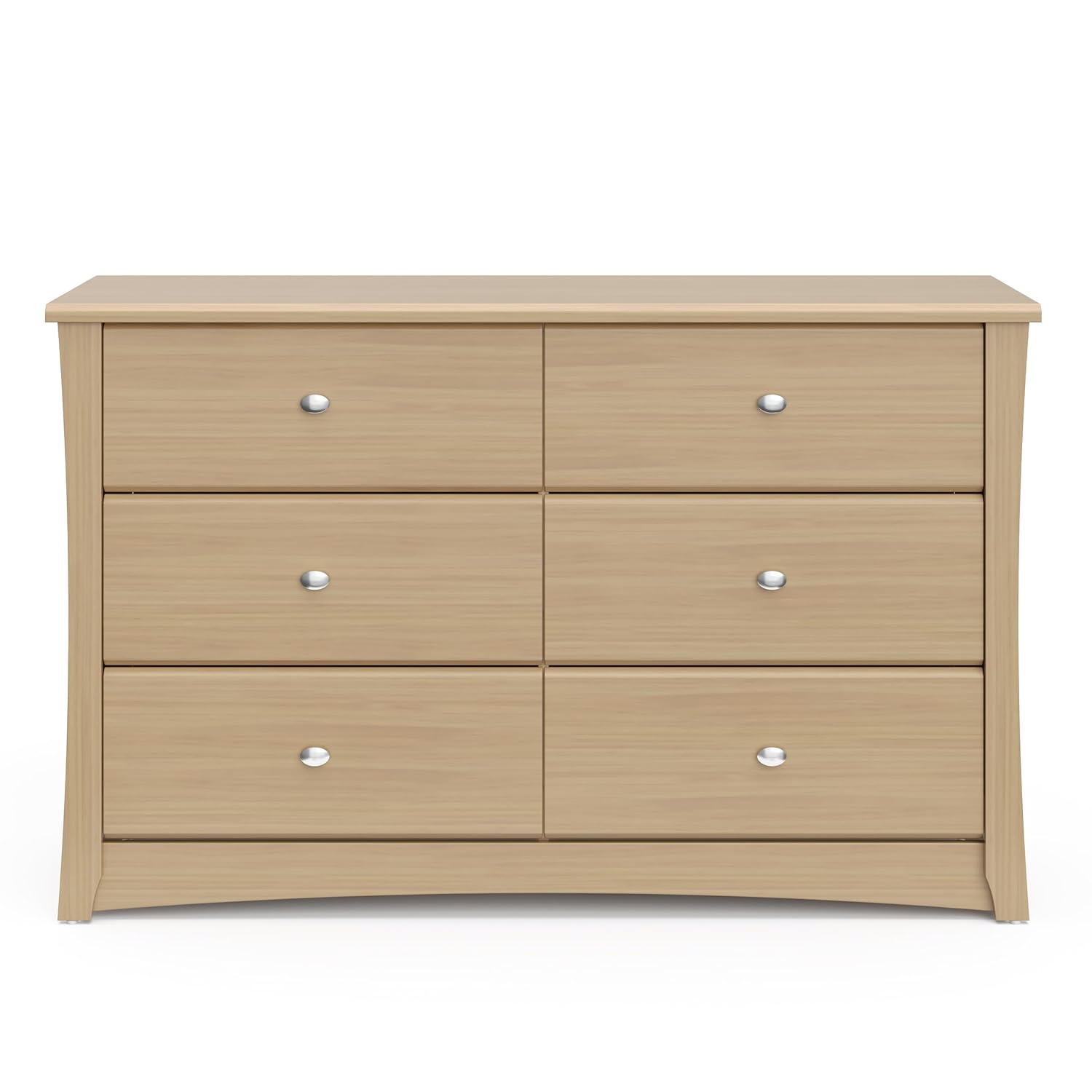 Storkcraft Crescent 6 Drawer Double Dresser (Driftwood) – GREENGUARD Gold Certified, Nursery Dresser for Kids Bedroom