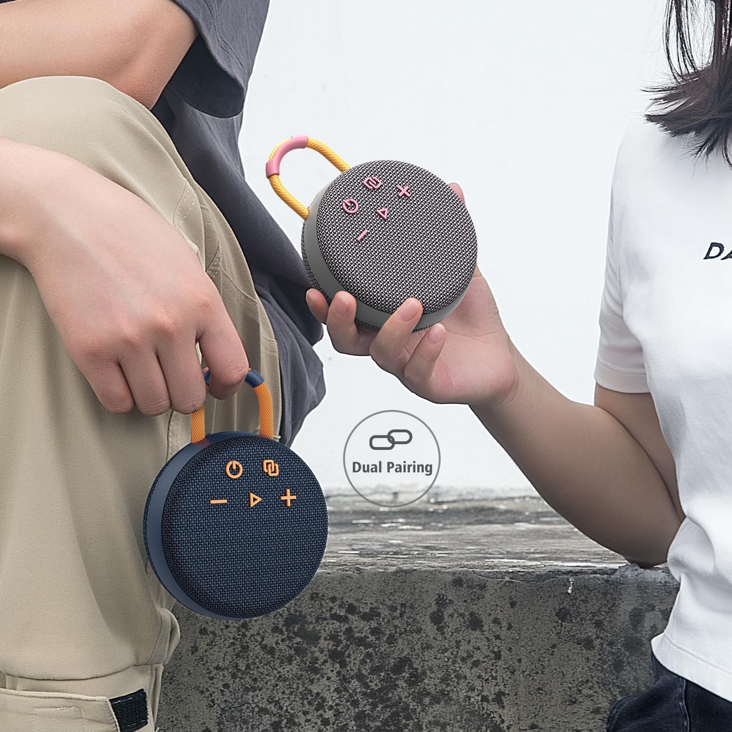 MusiBaby Wireless Mini Speaker – IPX7 Showerproof Audio with BT 5.3 & Clip, Durable Shell for Dorm Use, Gift Bags, Backpack Travel & Poolside Fun (Gray)