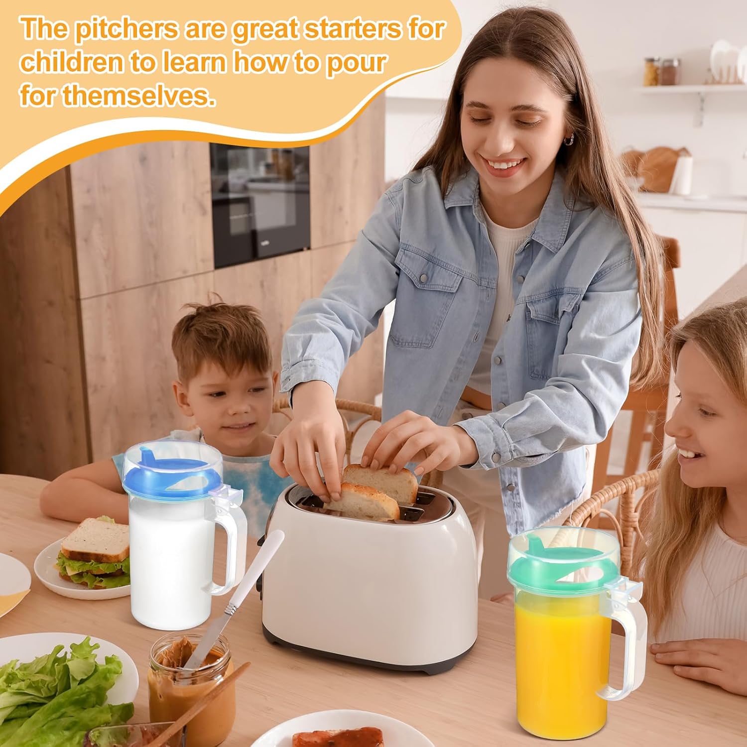 - Beautifully Designed: this easy pours pitcher makes pouring water during family meals or snack time a breeze; Each pitcher holds up to 16 ounces of liquid and measures 6.5 inches tall; 6 inches wide; Suitably sized for small hands