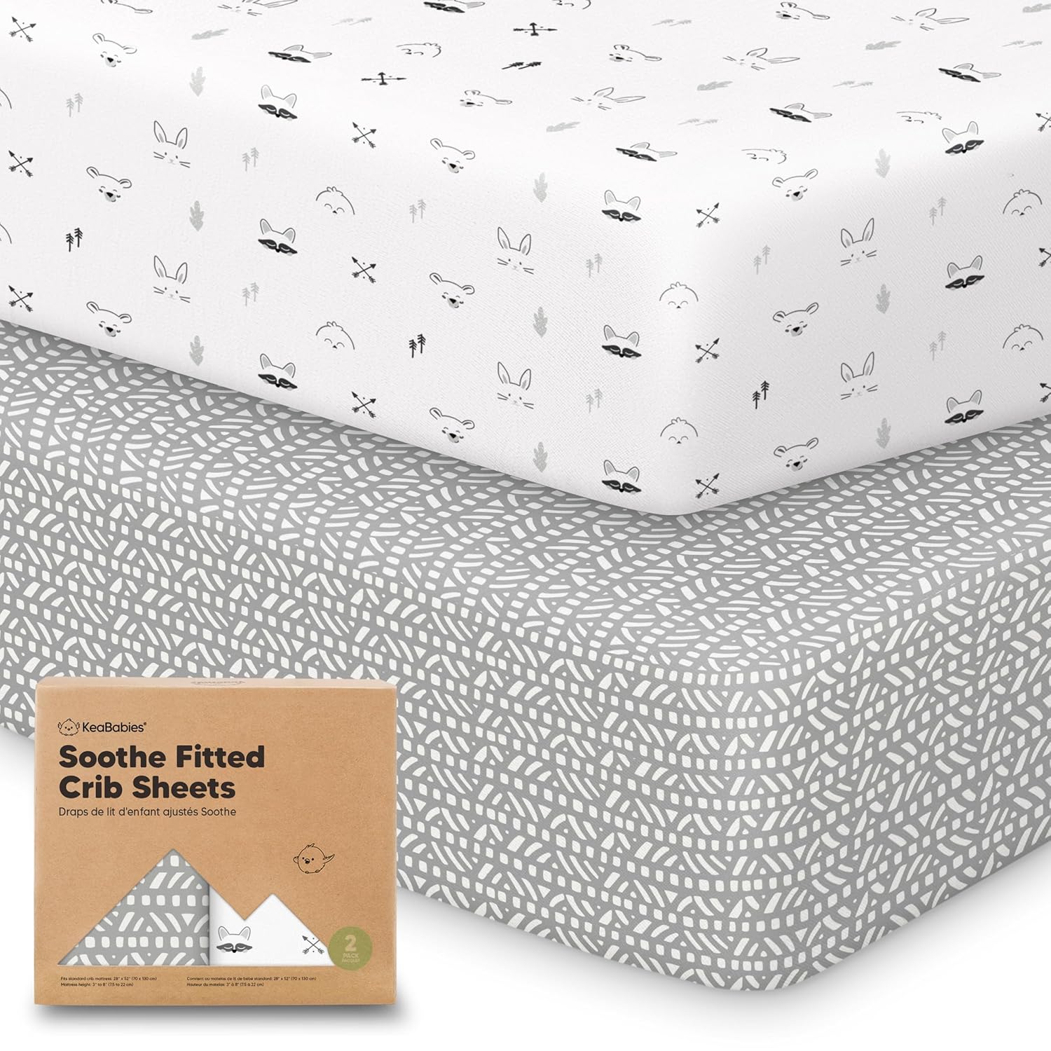 - 2-Pack Baby Crib Sheets - KeaBabies Soothe Fitted Crib Sheets for boys and girls; fit standard crib mattresses (52"x28" with height 3" to 8") perfectly, offering your baby a safe and restful sleep.
