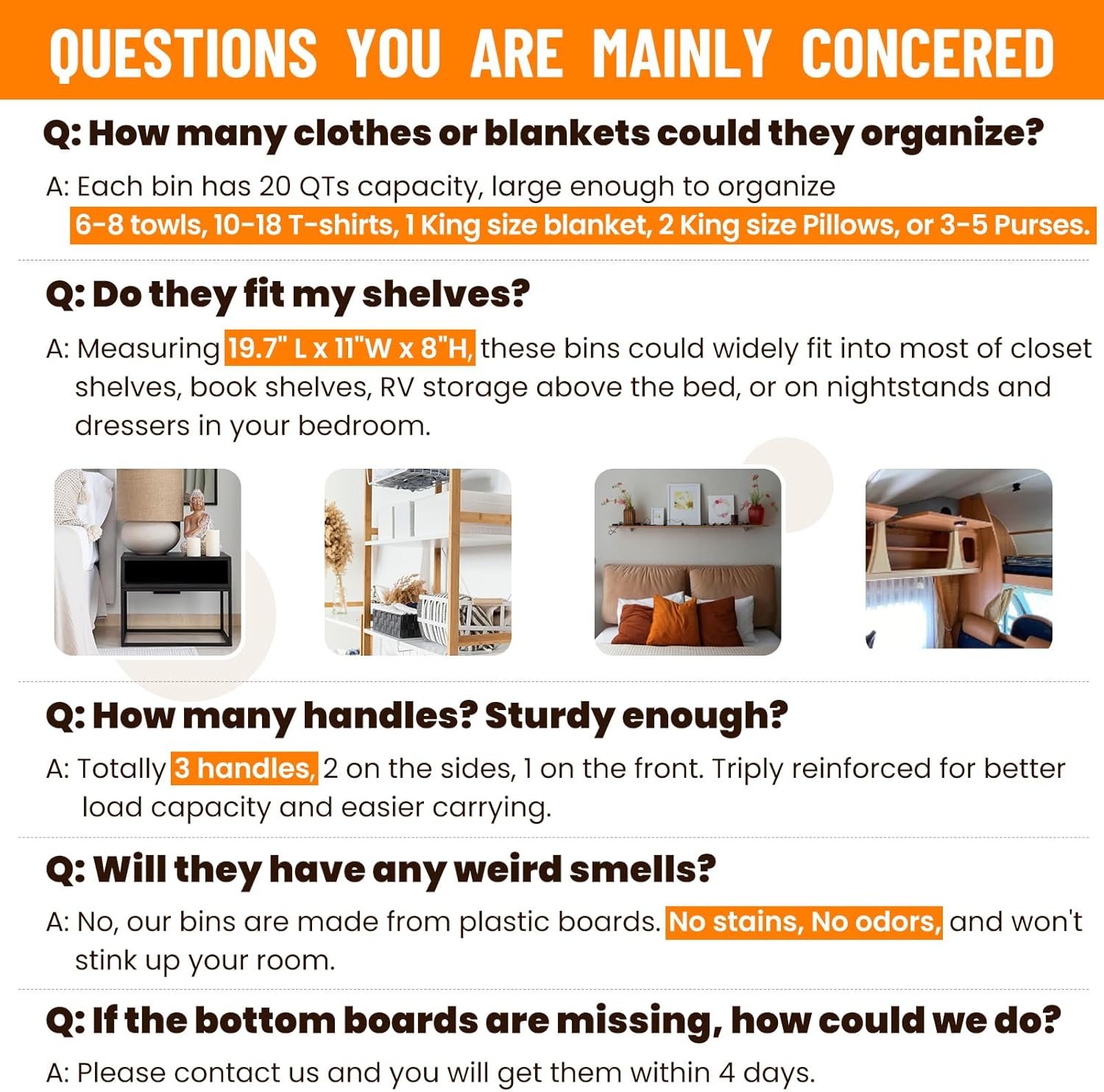 - ใ๐ฏ ๐๐๐๐๐๐ ๐๐ผ๐๐ฟ๐๐๐ & ๐๐๐ผ๐๐๐๐ ๐ฟ๐๐๐ผ๐๐๐ใThese closet organizer bins feature 3 built-in handles, reinforced for better carrying and moving, especially for wall-mounted closet shelves. Made of stiff plastic boards and durable non-woven fabric, these bins for organization could remain structured for years, also odorless for safer use.