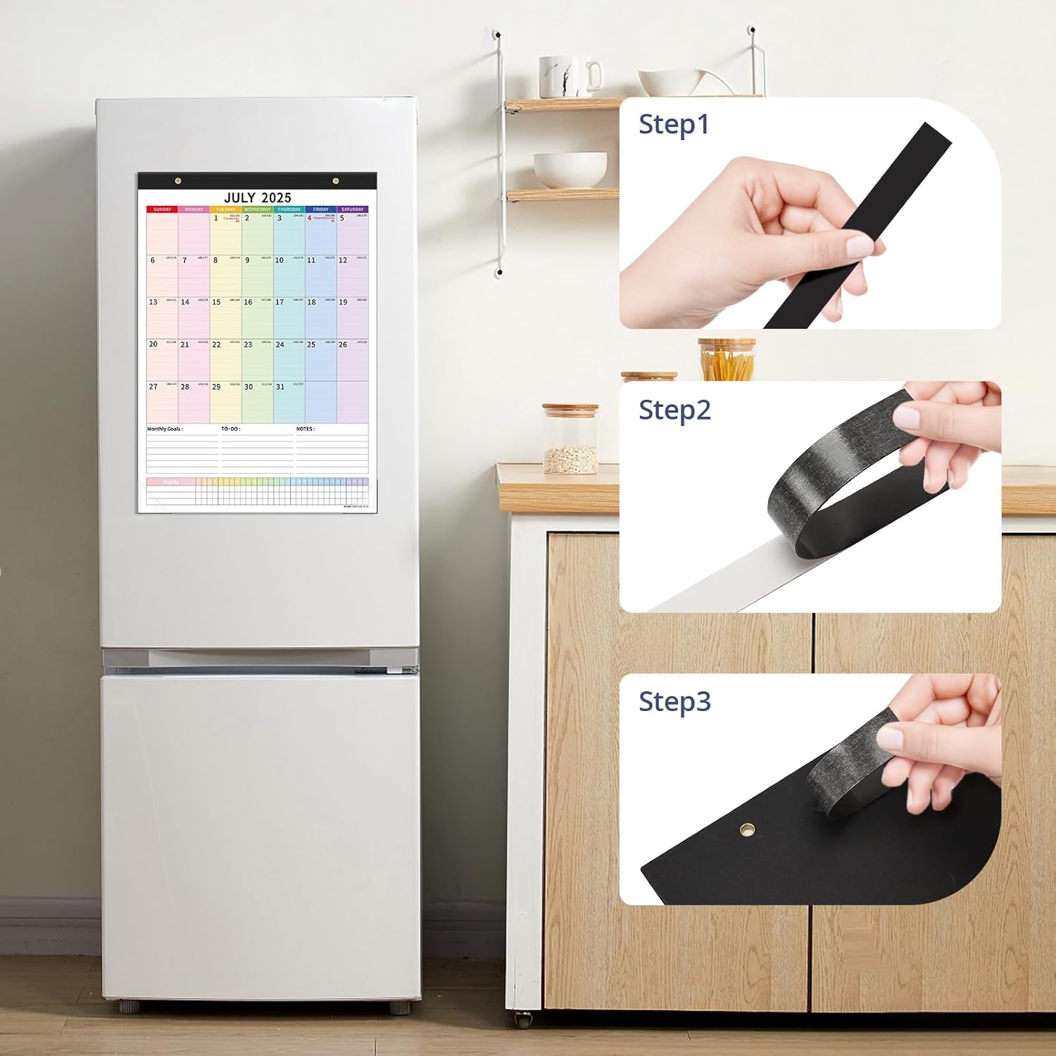 - Magnetic Calendar: July 2025 to Dec 2026 calendar with PVC Cover includes a magnetic strip, hanging rope, and 3 personalized stickers, ensuring no missing or duplicated months. Hang it on your fridge or wall for convenient placement. With 18 months, easily track your schedule and plan ahead effectively.