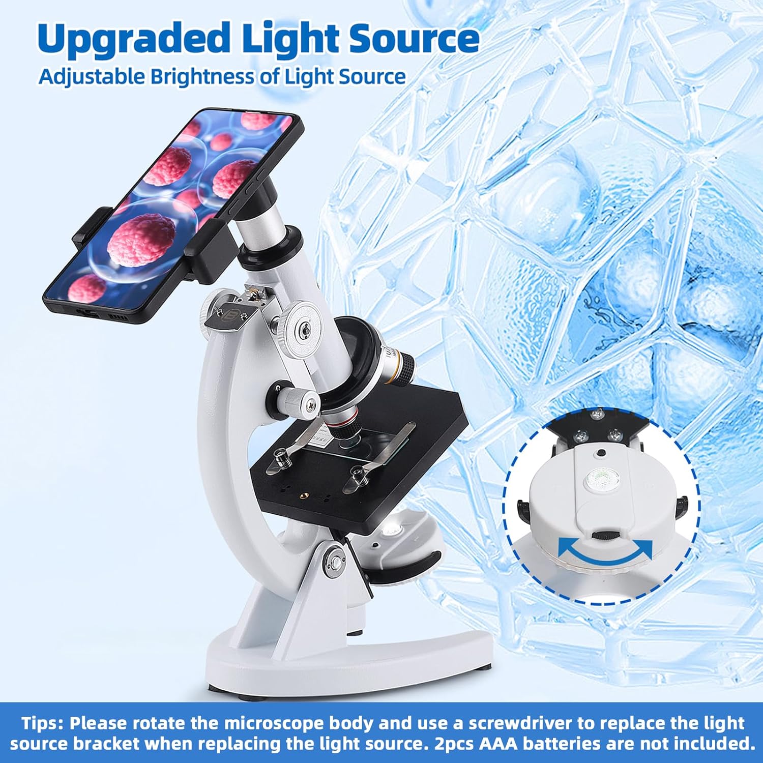 Microscope for Adults Kids, 40X-2000X Microscope Kit with Adjustable Brightness LED, Slides, Biological Compound Microscopes for School Lab Home Education, Gifts for Children Students