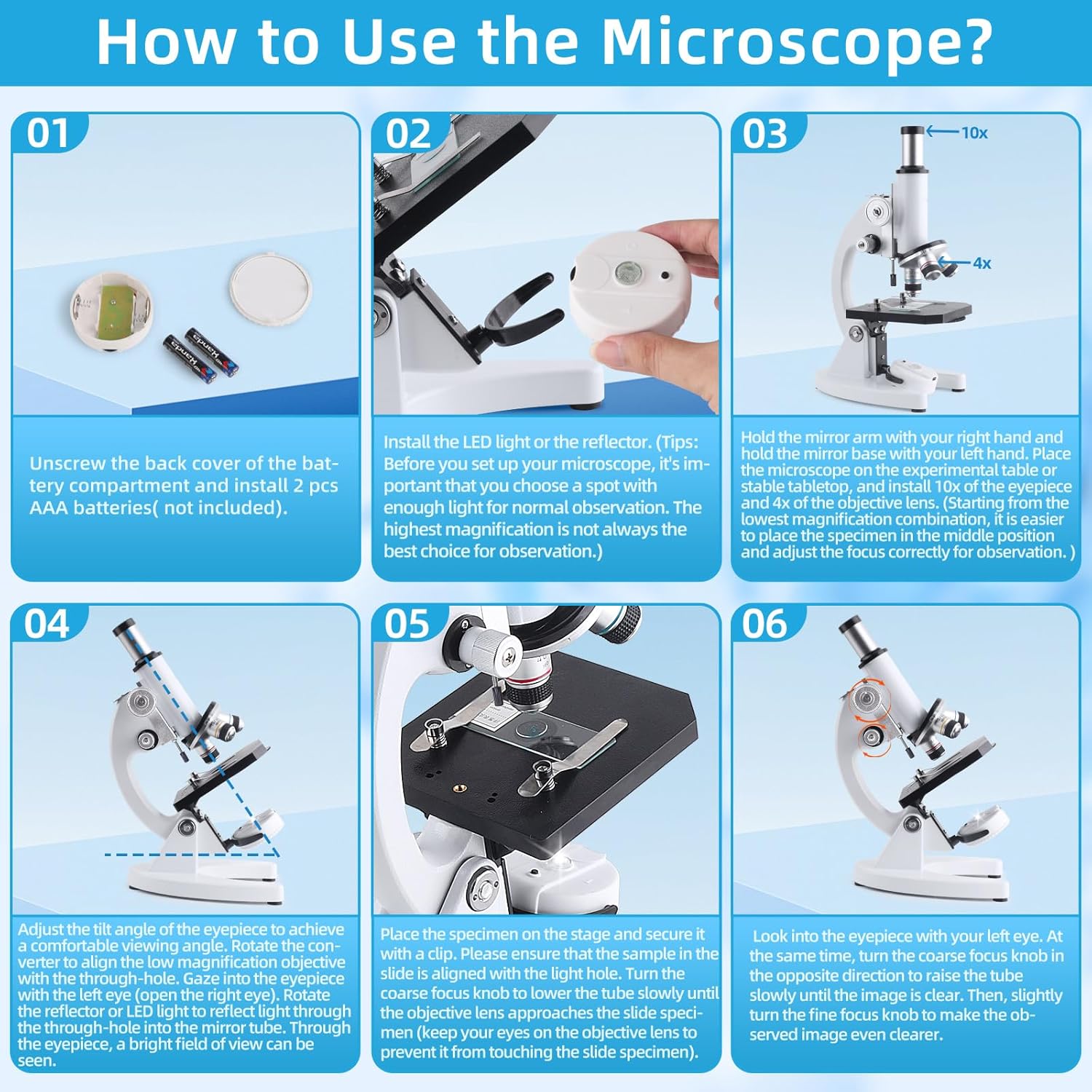 - Suitable for Various Scenarios: The compound microscope can be used to observe tiny details in specimen slides, magnified to a large enough size for clear observation of the rich details in the sample. The 40X-2000X biological microscope is a practical educational tool, perfect for home, school, teaching, demonstrations, laboratories, etc