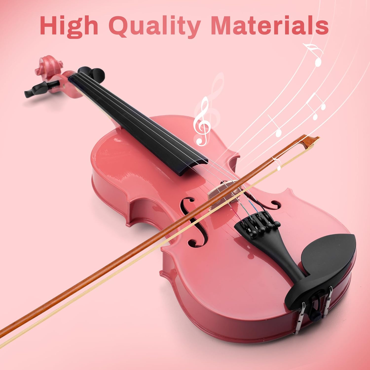 - Music Instruments For Kids & Adults: The violin for beginners is an ideal stringed musical instruments for many kids and students. Not only the complete outfit but also the ready-to-play setup. The 4/4 pink violin size has included necessities to get your practice started. Therefore, the Poseidon pink violin beginners set must be a best choose as a gift for thanksgiving, christmas, mothers day, teachers day etc