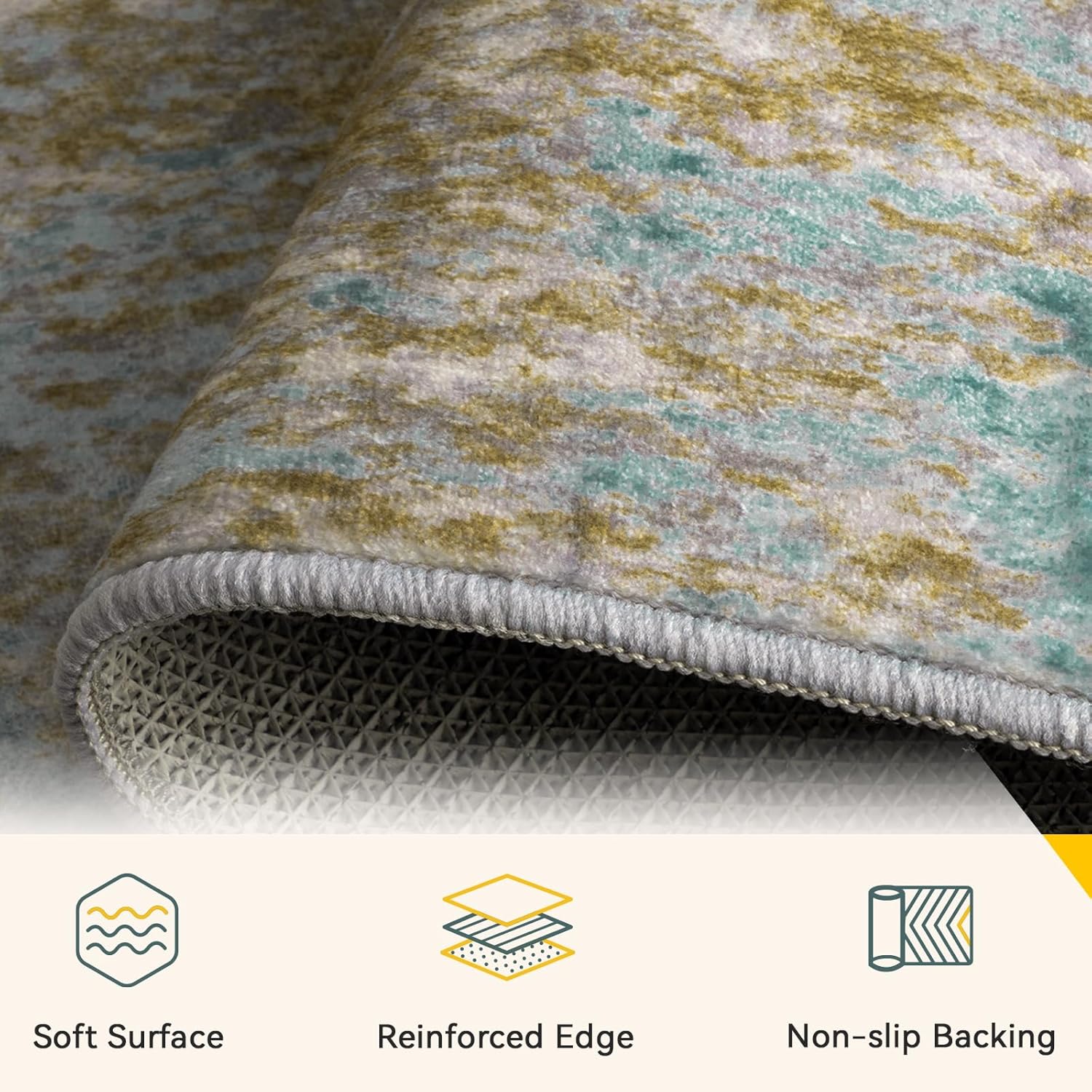 Washable Area Rugs 9'x12' Non-Slip Modern Abstract Soft for Living Room Entryway Bedroom Nursery, Print Pattern, Teal Blue Taupe