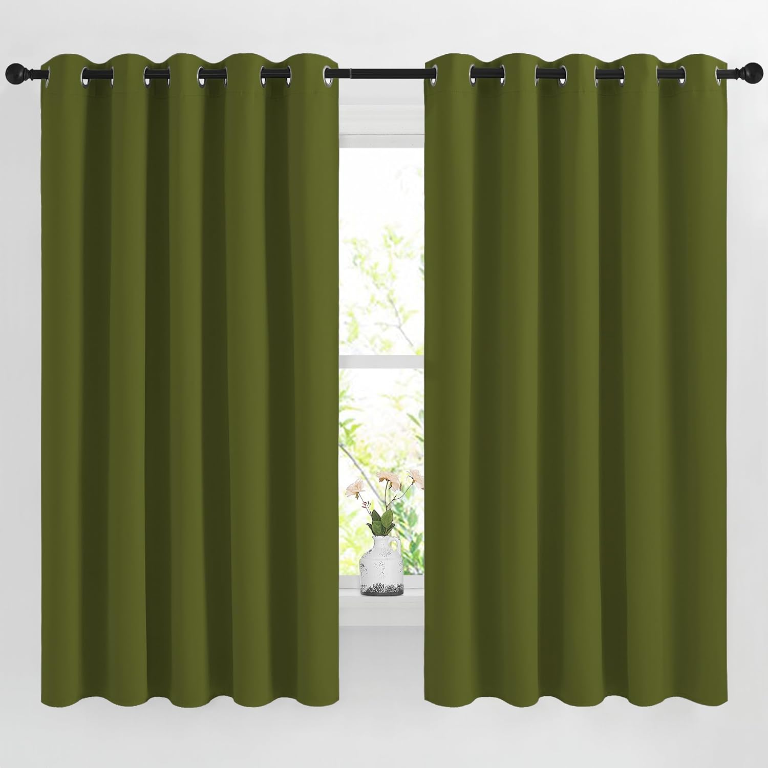 NICETOWN Room Darkening 66 inch Curtains for Bedroom, Grommet Thermal Insulated Room Darkening Window Treatments Voice Reducing for Kids Room, 2 Panels, W66 x L66, Olive