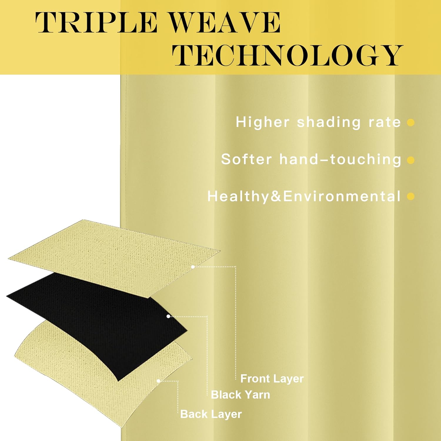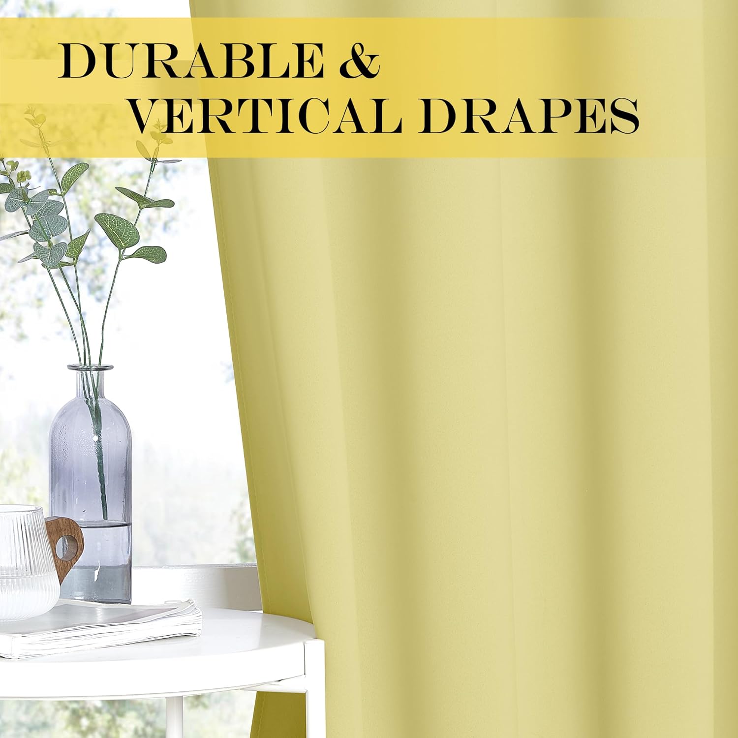 NICETOWN Paler Yellow Room Darkening Curtains 102 inch Length, Grommet Energy Saving Thermal Drapes Sound Reducing Heat Blocking Window Treatments for Living Room, 2 Panels, W52 x L102