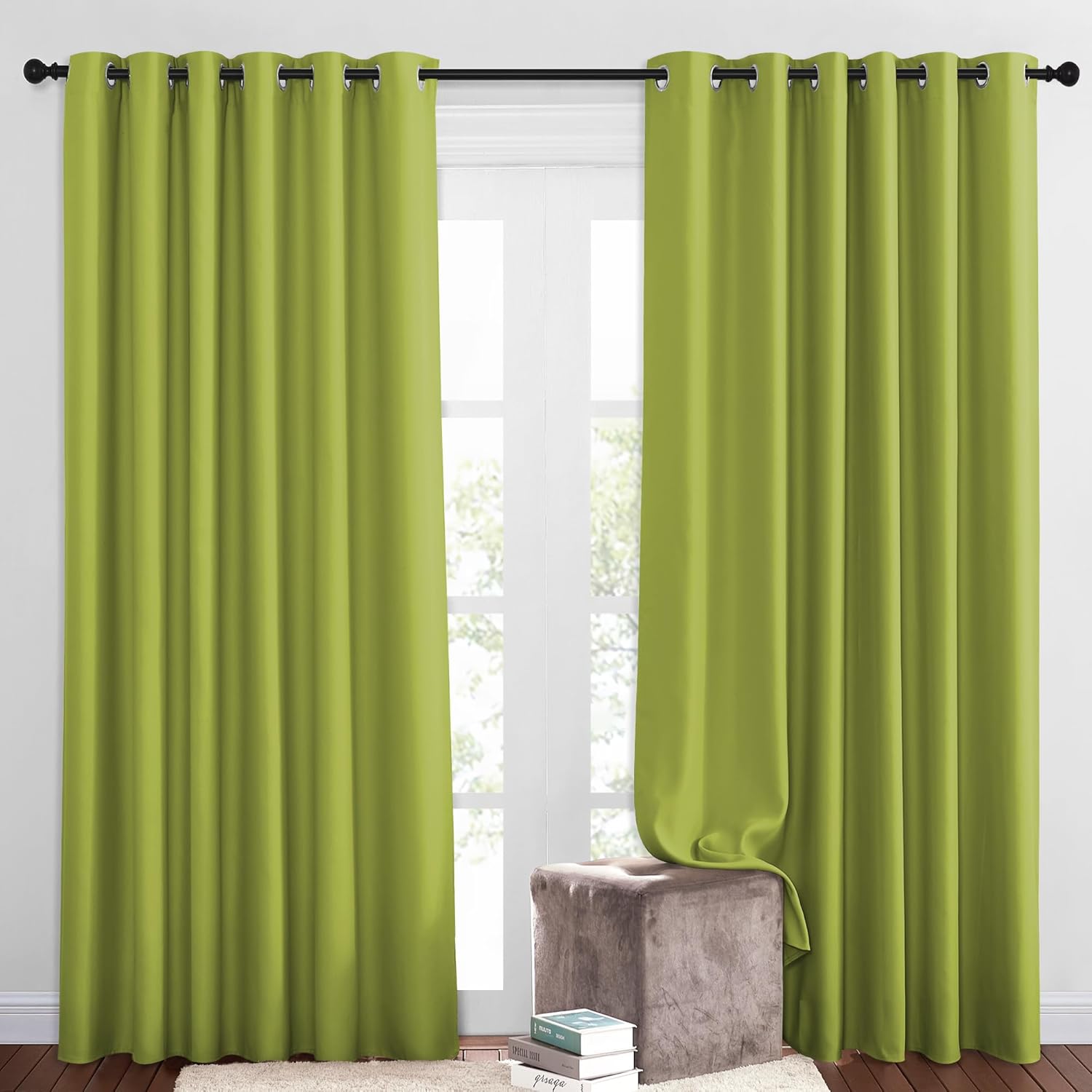 NICETOWN Bedroom Room Darkening Curtains and Drapes - Window Treatment Thermal Insulated Solid Grommet Room Darkening Draperies for Bedroom/Living Room (Fresh Green, Set of 2, 80 by 84 Inch)