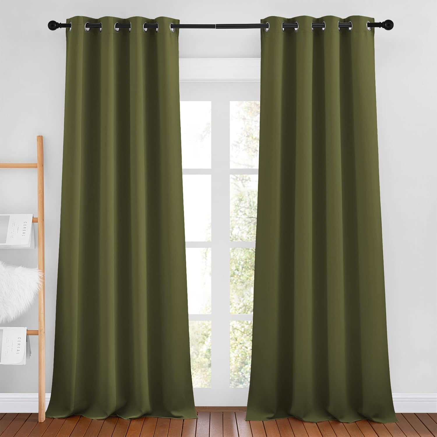 NICETOWN Olive Curtains 96 inches Long, Grommet Thermal Insulated Room Darkening Curtains Privacy Window Treatments for Boys Room/Living Room, W46 x L96, 2 Panels