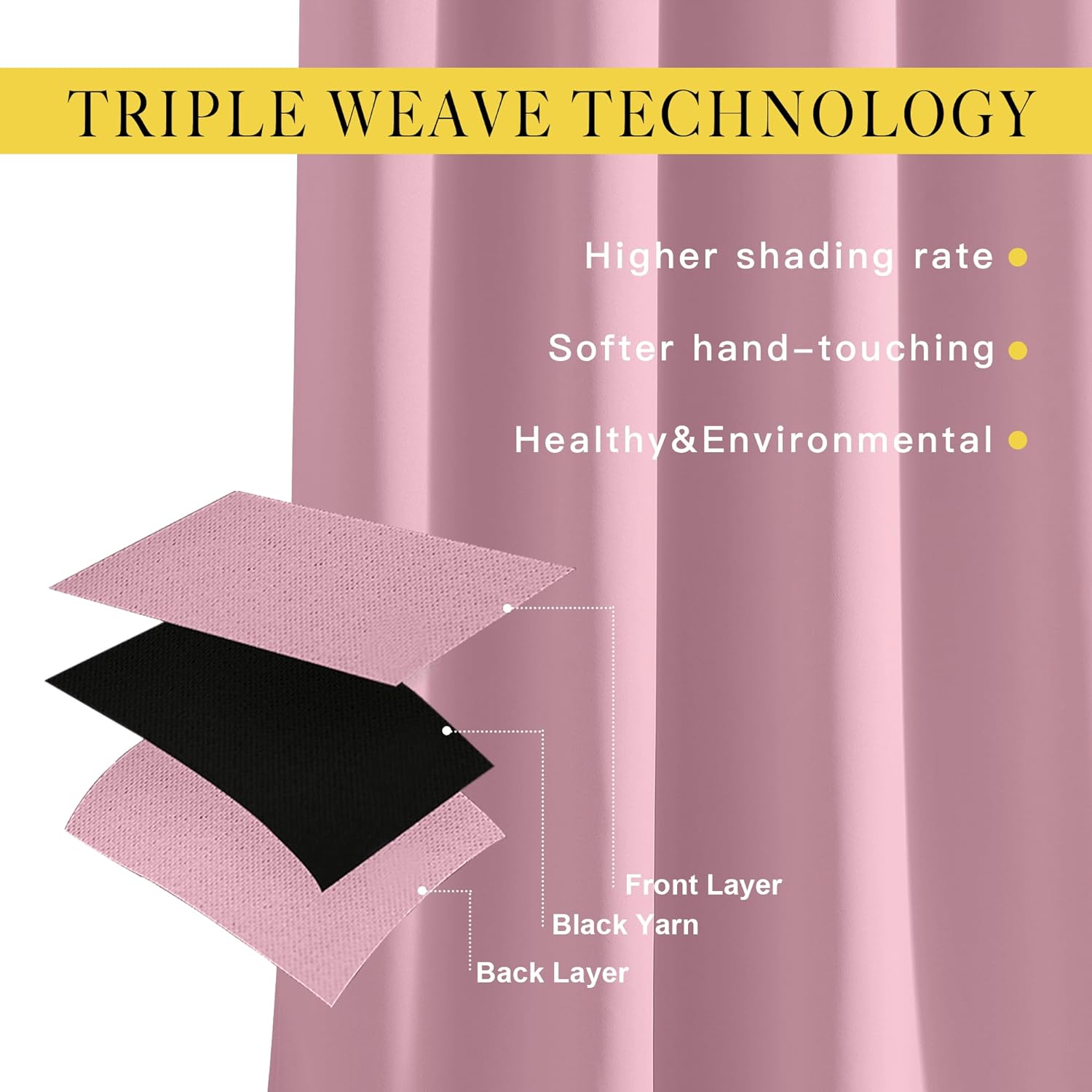 - Amazing Material: Super heavy and soft Blackout Curtain Panels are very upmarket. Besides, 85%-102% light blocking, thermal insulated, soundproof, and energy-efficient. Thread trimmed and wrinkle-free, both sides are the same color.