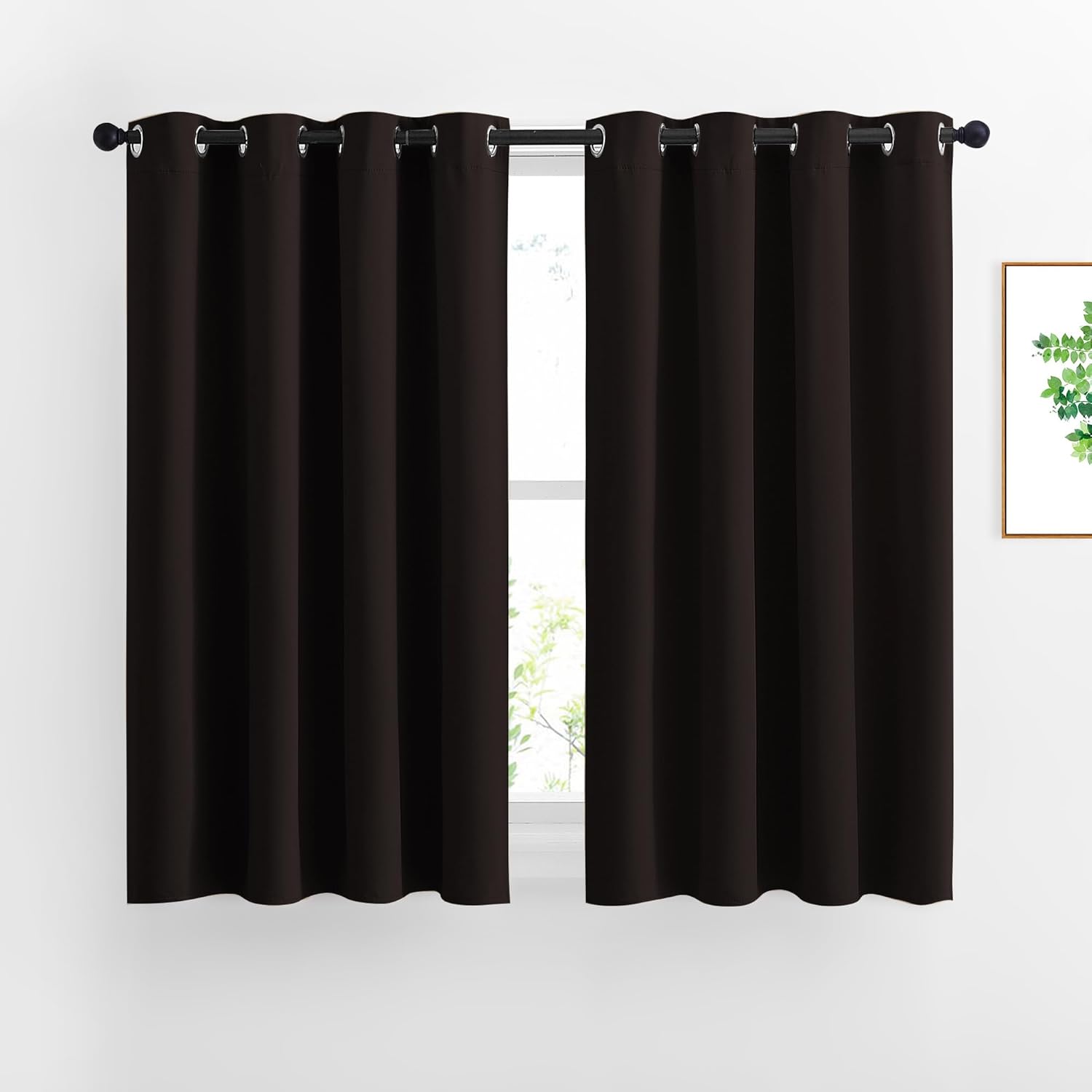 NICETOWN Blackout Curtains for Windows 54 inch Length - Solid Thermal Insulated Grommet Light Reducing Panels Window Treatment for Living Room (Toffee Brown, 2 Panels = 92" Wide)