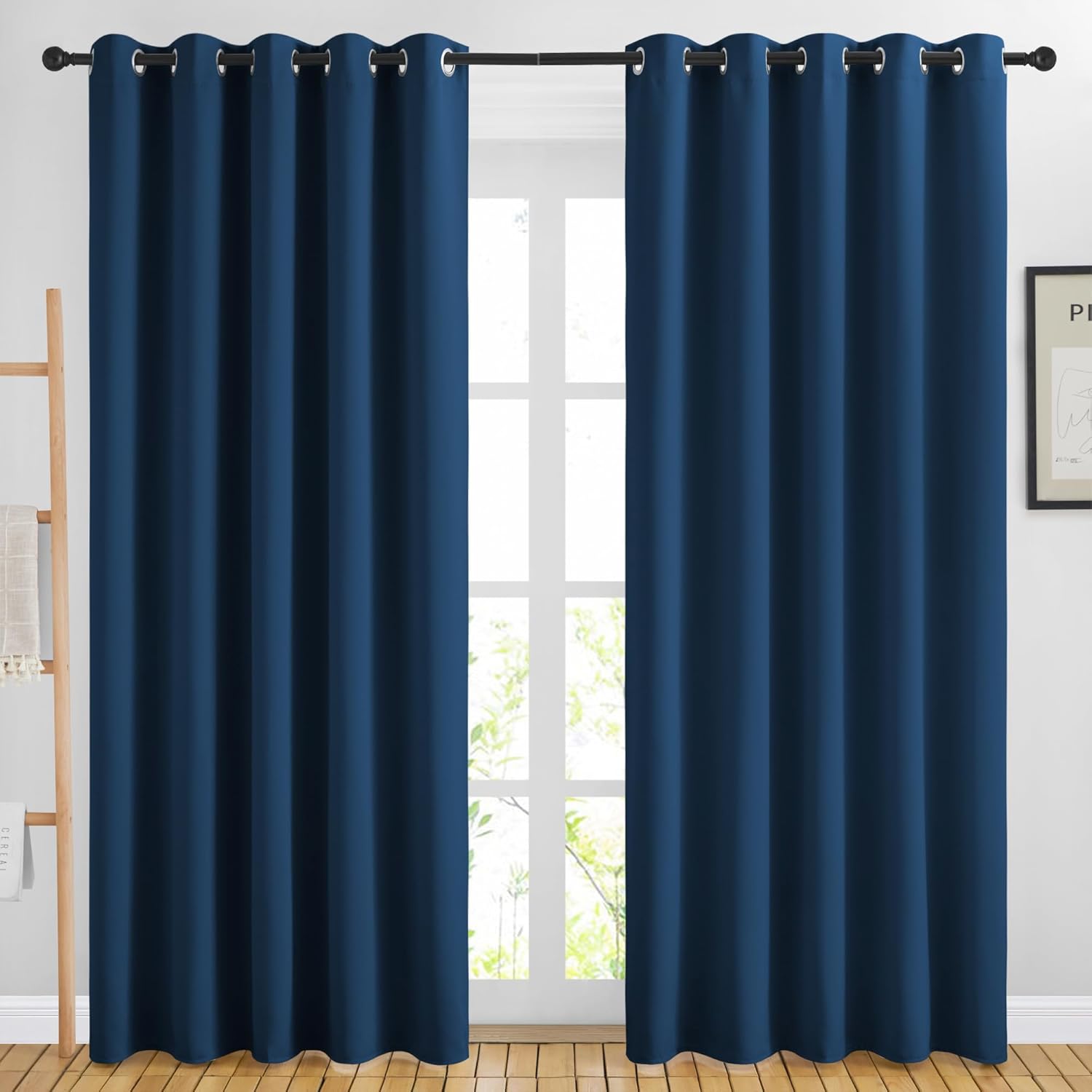 - Amazing Material: Super heavy and soft Blackout Curtain Panels are very upmarket. Besides, 85%-102% light blocking, thermal insulated, soundproof, and energy-efficient. Thread trimmed and wrinkle-free, both sides are the same color.