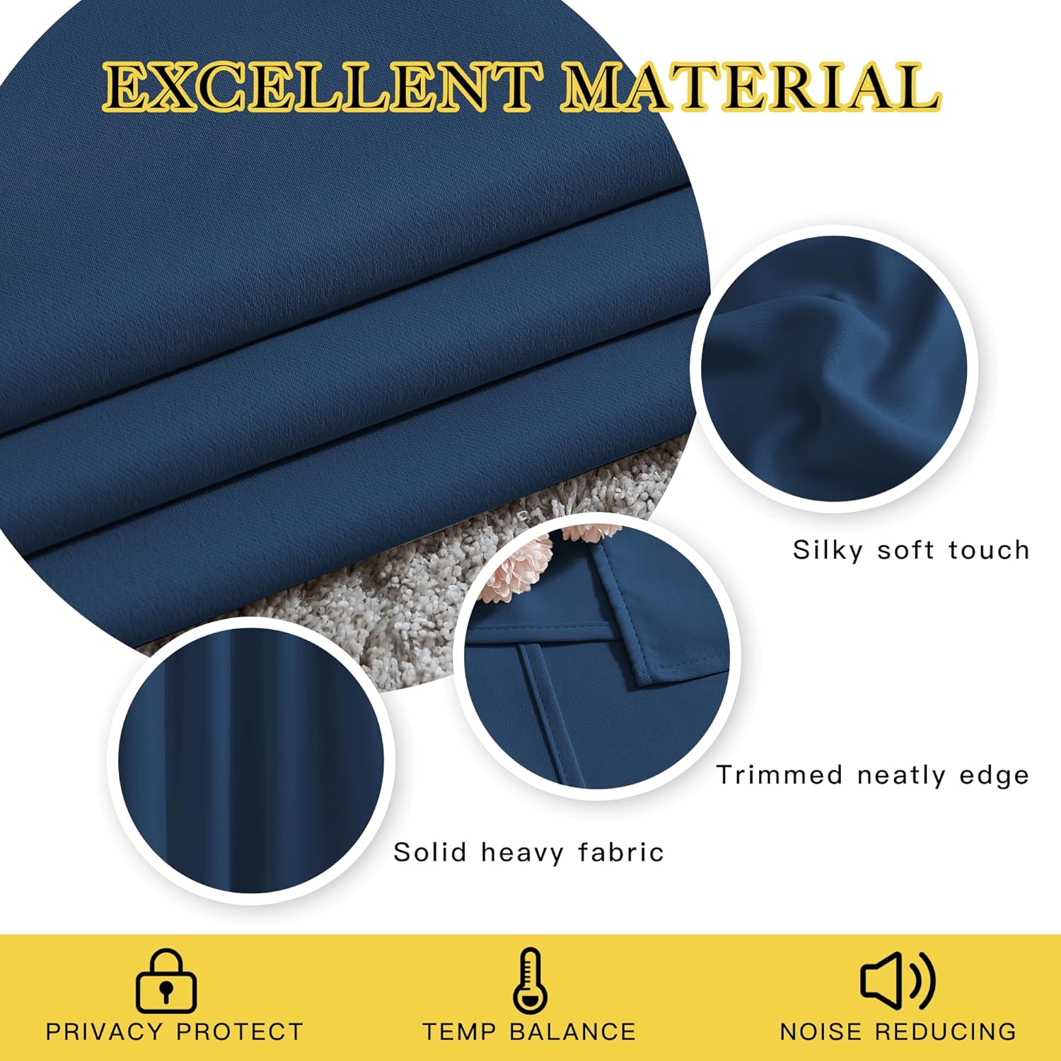 - Amazing Material: Super heavy and soft Blackout Curtain Panels are very upmarket. Besides, 85%-99% light blocking, thermal insulated, soundproof, and energy-efficient. Thread trimmed and wrinkle-free, both sides are the same color.