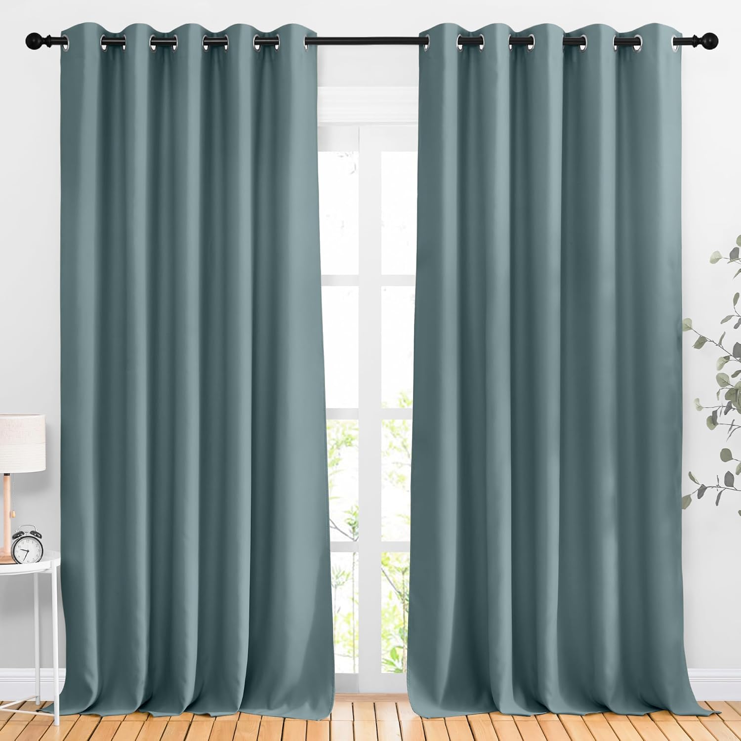 NICETOWN Room Darkening Curtains Extra Long 110 Inches, Grommet Thermal Insulated Weighted Window Treatments for Living Room/Farmhouse, W66 x L110, Greyish Blue, 2 Panels