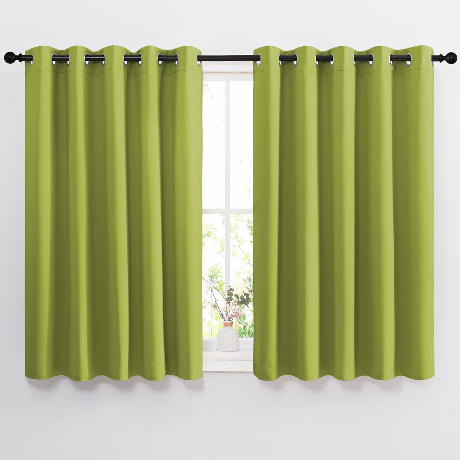 NICETOWN Room Darkening Curtains Panels for Window - Triple Weave Energy Saving Thermal Insulated Solid Grommet Room Darkening Drapes for Kitchen (1 Pair, 66 inches by 54 Inch, Fresh Green)