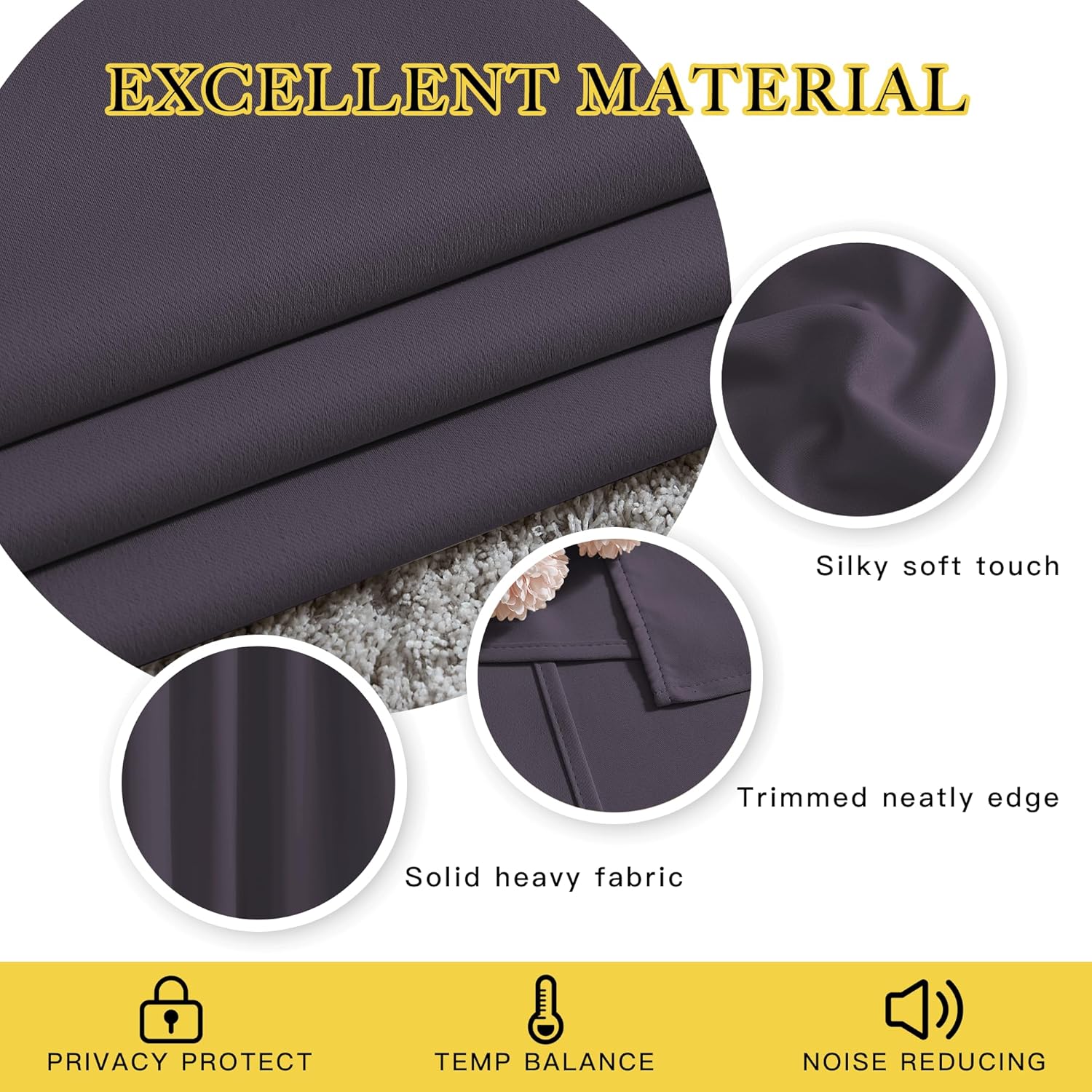 NICETOWN Greyish Purple Blackout Curtains 90 inches Long, Grommet Thermal Insulated Room Darkening Window Treatments Voice Reducing for Bedroom/Patio Door, 2 Panels, W52 x L90