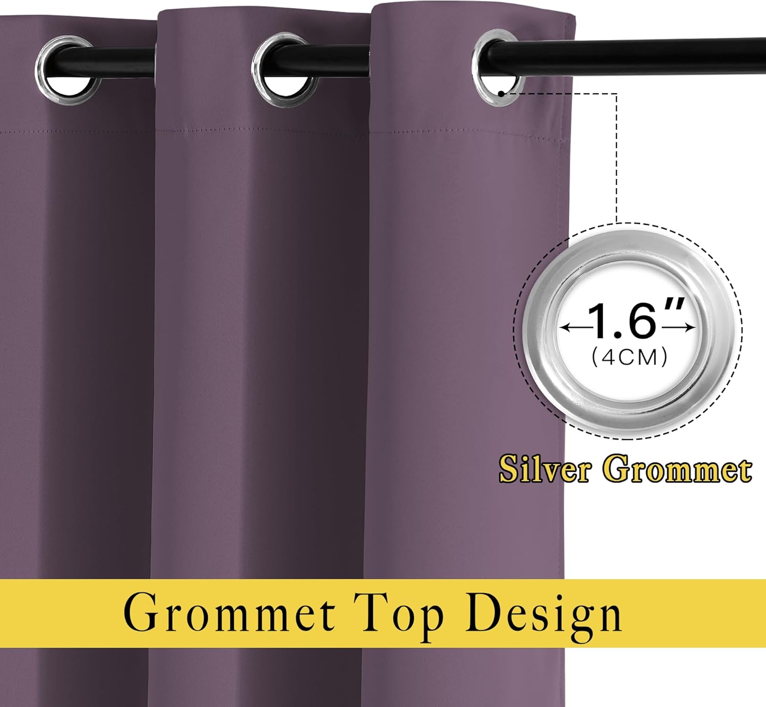 - Elegant Design: 2 panels per package. Each Blackout Curtain measures 52" wide x 95" long. The design of silver grommet (1.6-inch inner diameter) creates casual elegance for your house, which makes the curtains easy to install and slide.