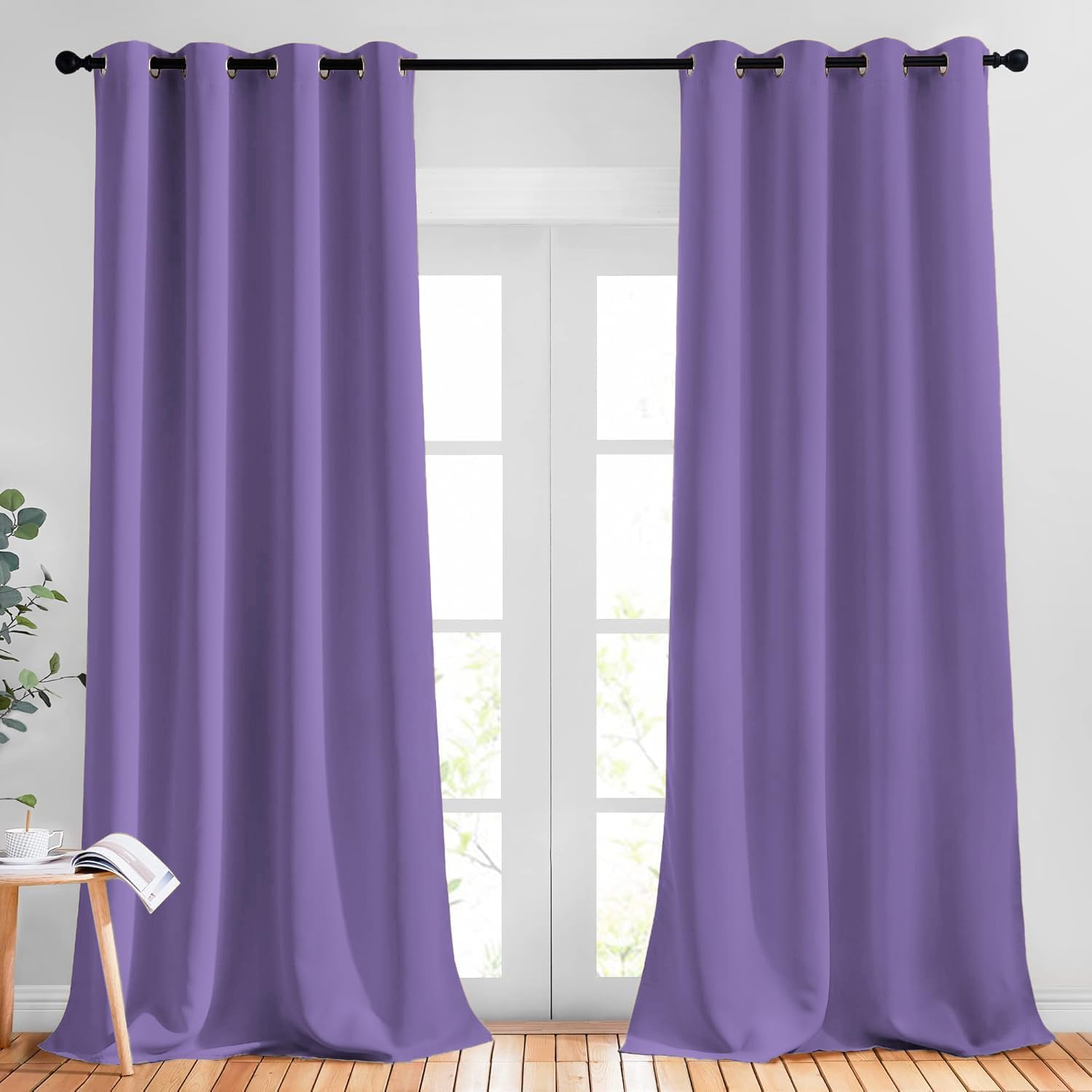 NICETOWN Blackout 102 inch Curtains for Living Room, Grommet Thermal Curtains Room Darkening Window Treatments Sound Reducing for Bedroom, Lilac Purple, 2 Panels, W52 x L102