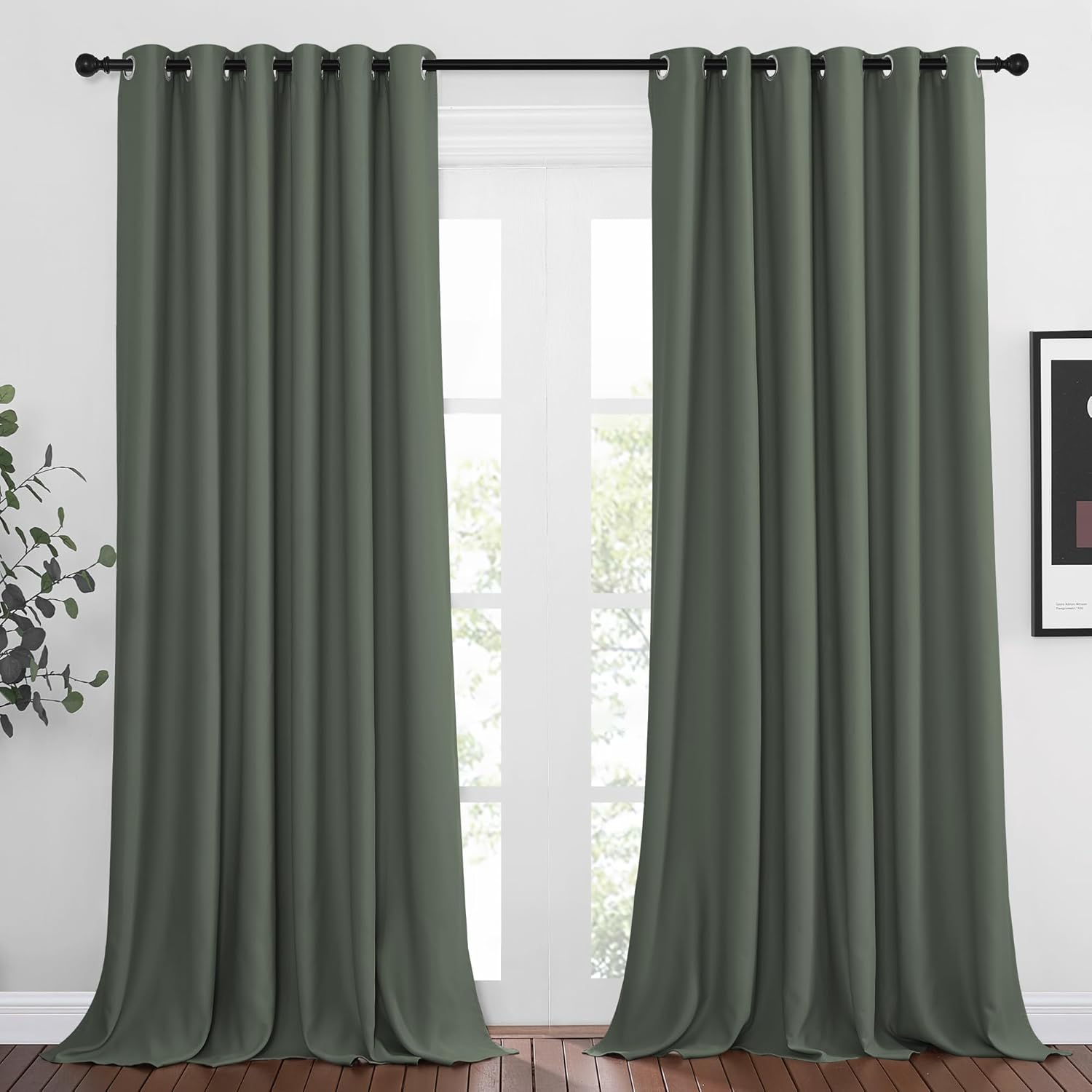 NICETOWN Living Room Window Curtain Drapes Extra Long & Wide - Living Room Panels Grommet Top Window Treatment for Hall & Guest Room (W80 x L108, Dark Mallard, 2 Pieces)