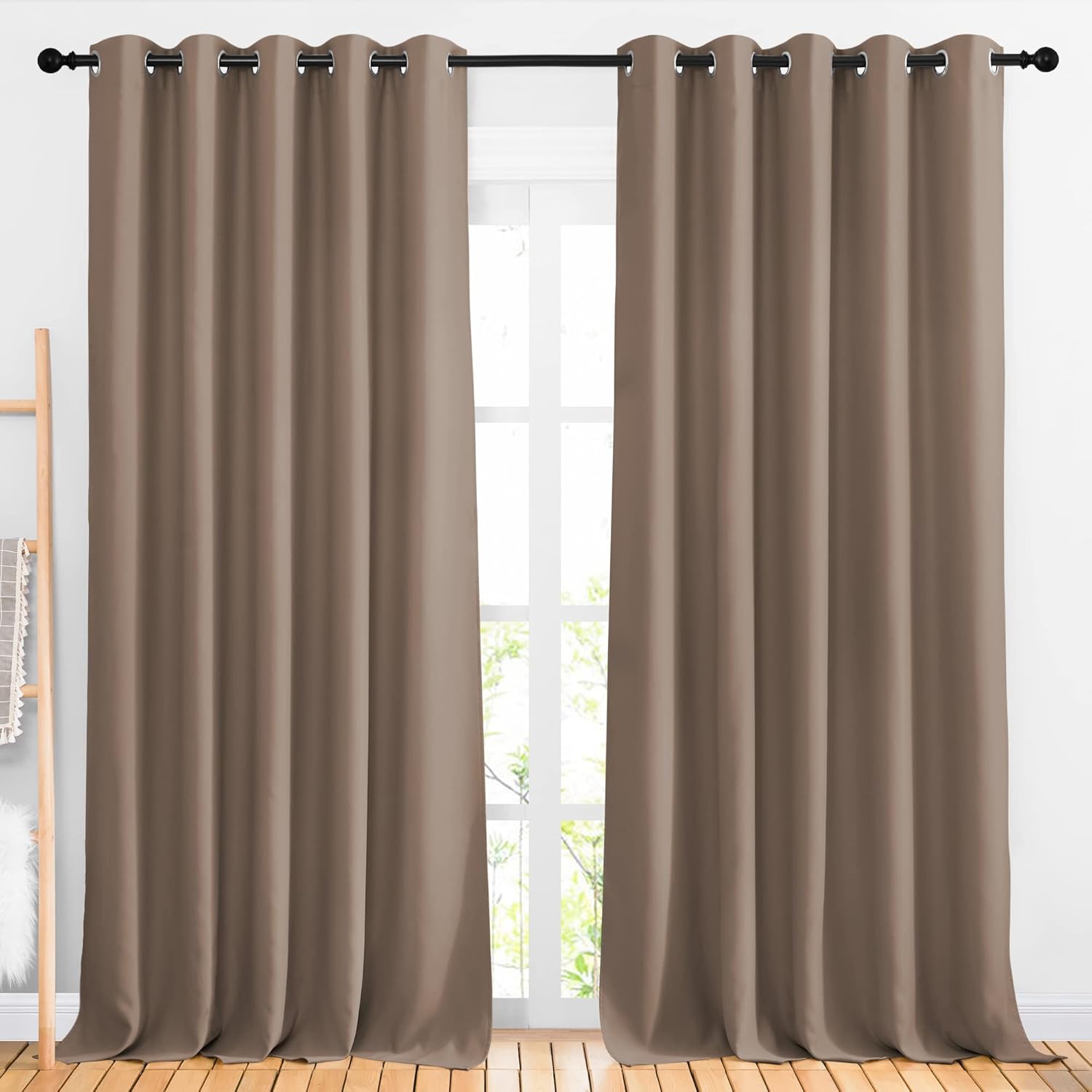 NICETOWN Bedroom Blackout 110 inch Curtains for Sliding Glass Door, Grommet Thermal Insulated Solid Window Treatments Sound Reducing for Living Room, W66 x L110, Cappuccino, Set of 2