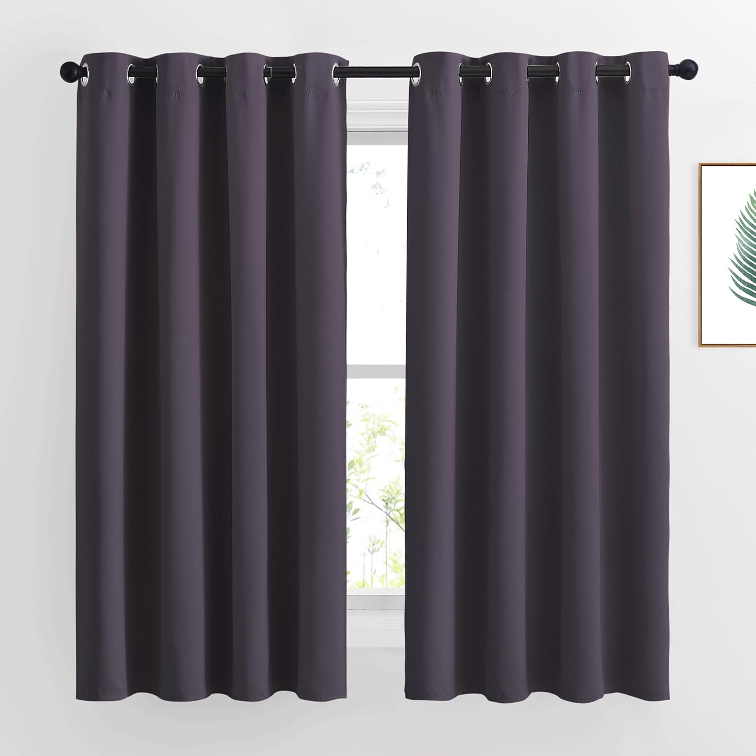 NICETOWN Blackout Curtains for Bedroom, Grommet Solid Thermal Drapes Light Blocking Window Treatments Sound Reducing for Living Room, Greyish Purple, W46 x L63, 2 Panels