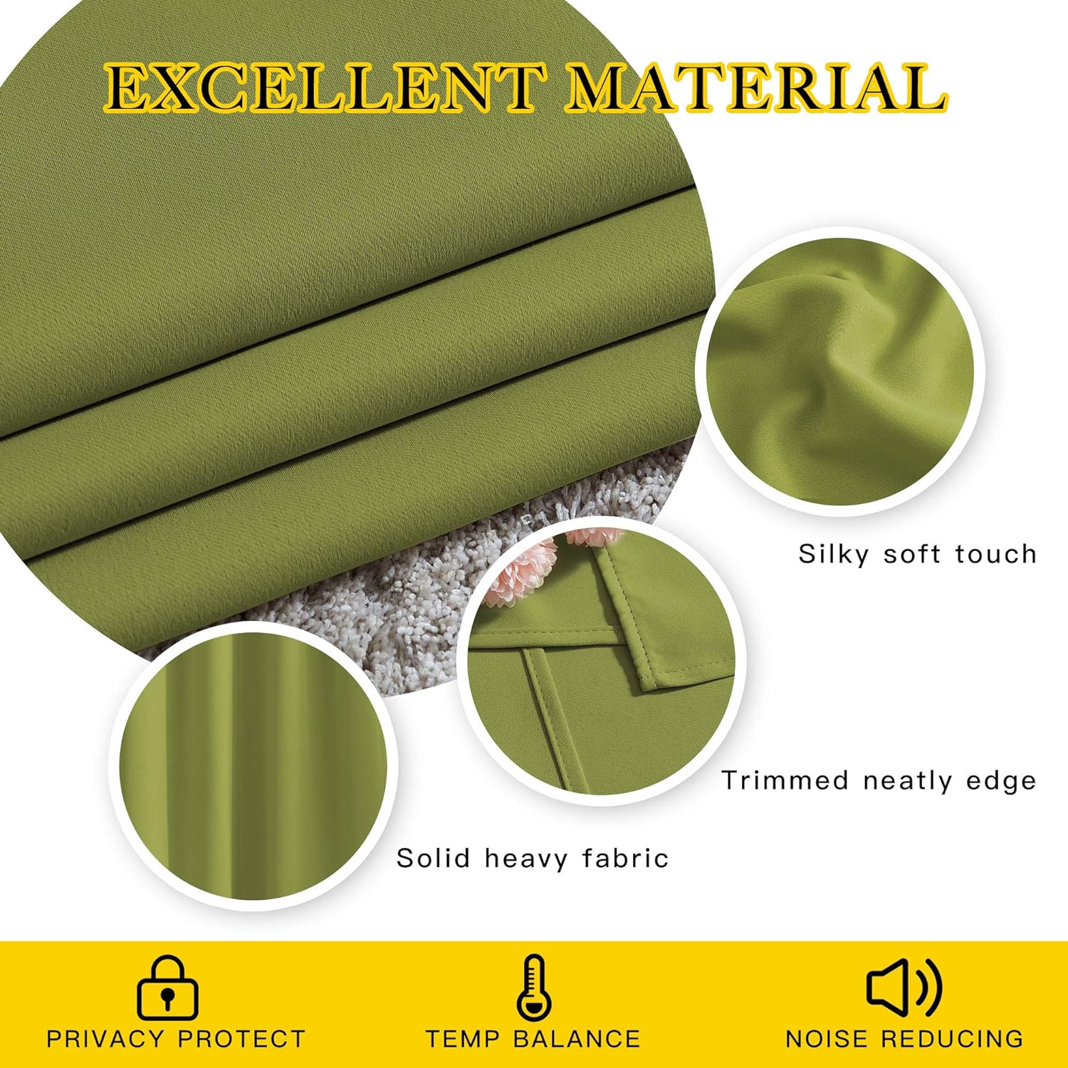 - Amazing Material: Super heavy and soft Blackout Curtain Panels are very upmarket. Besides, 85%-99% light blocking, thermal insulated, soundproof, and energy-efficient. Thread trimmed and wrinkle-free, both sides are the same color.