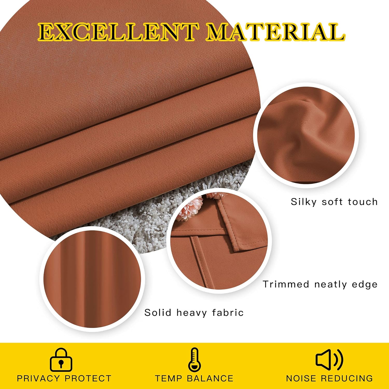 - Amazing Material: Super heavy and soft Blackout Curtain Panels are very upmarket. Besides, 85%-104% light blocking, thermal insulated, soundproof, and energy-efficient. Thread trimmed and wrinkle-free, both sides are the same color.