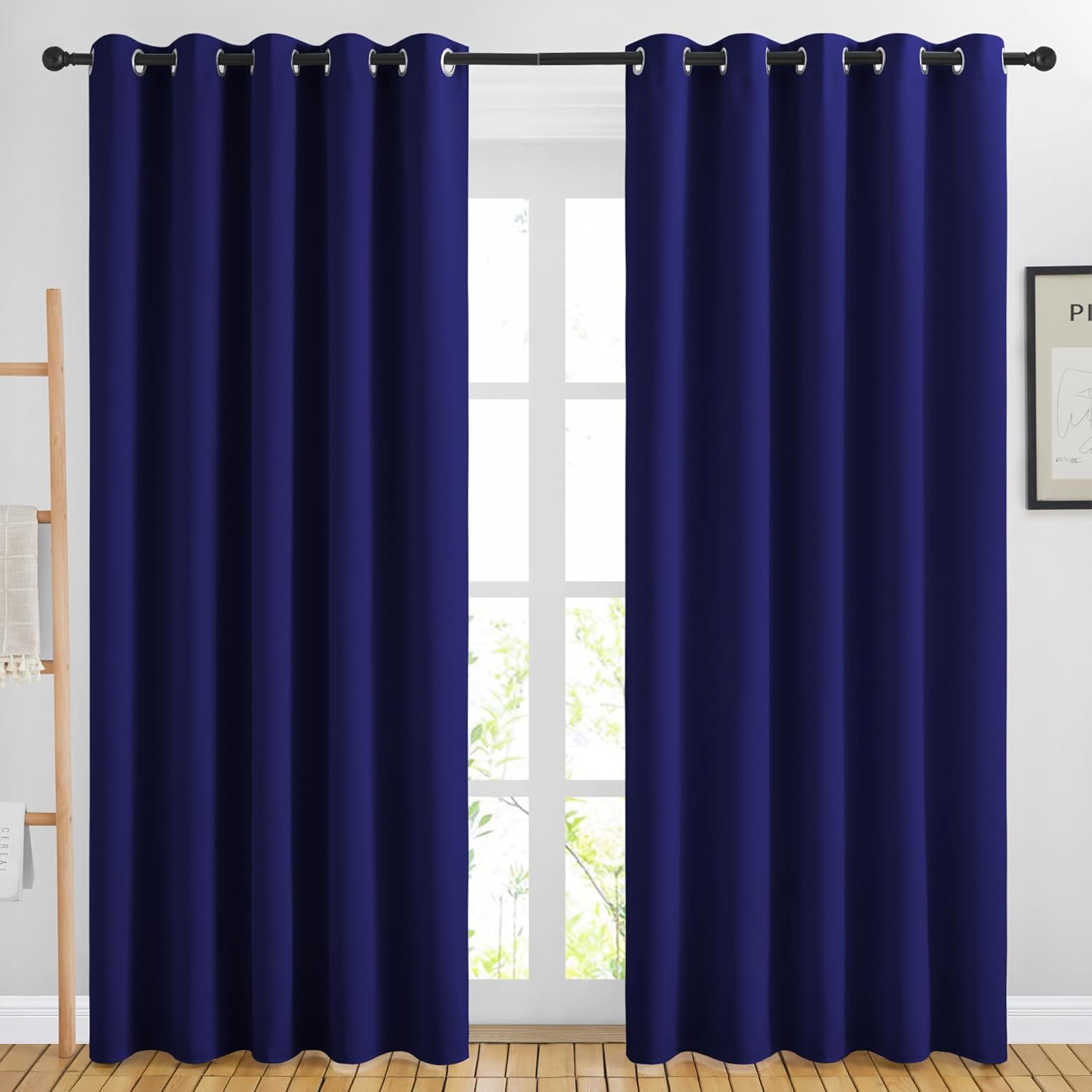 NICETOWN Blackout Curtains Panels for Bedroom - 3 Pass Microfiber Noise Reducing Thermal Insulated Solid Ring Top Blackout Window Drapes (2 Panels, 66 x 84 Inch, Navy Blue)