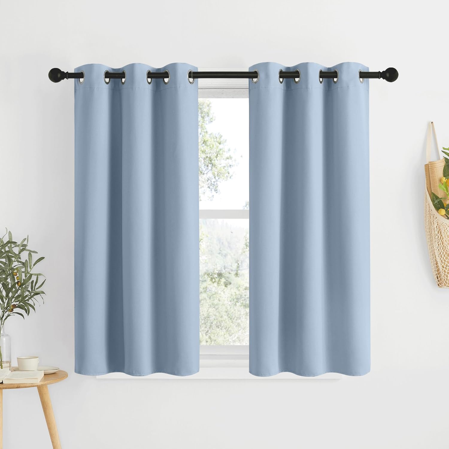 NICETOWN Blackout Bedroom Curtains 50 inches Long - Window Treatment Thermal Insulated Solid Grommet Room Darkening Privacy Sound Reducing for Kitchen, Vintage Blue, Set of 2, W34 x L50