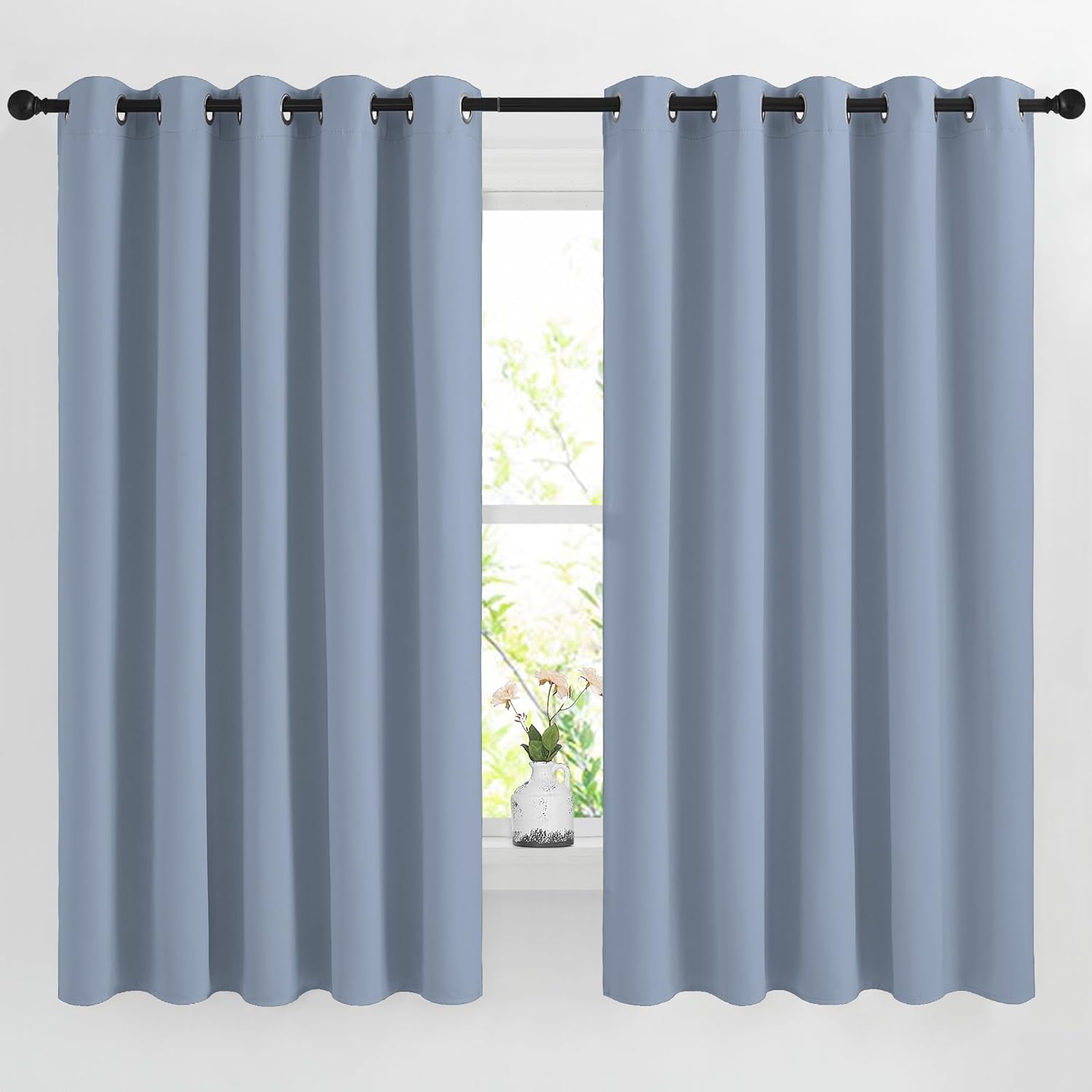 NICETOWN Vintage Blue Blackout Curtains for Bedroom, Grommet Thermal Insulated Room Darkening Window Treatments for Christmas/Thanksgiving Day, W66 x L66, 2 Panels
