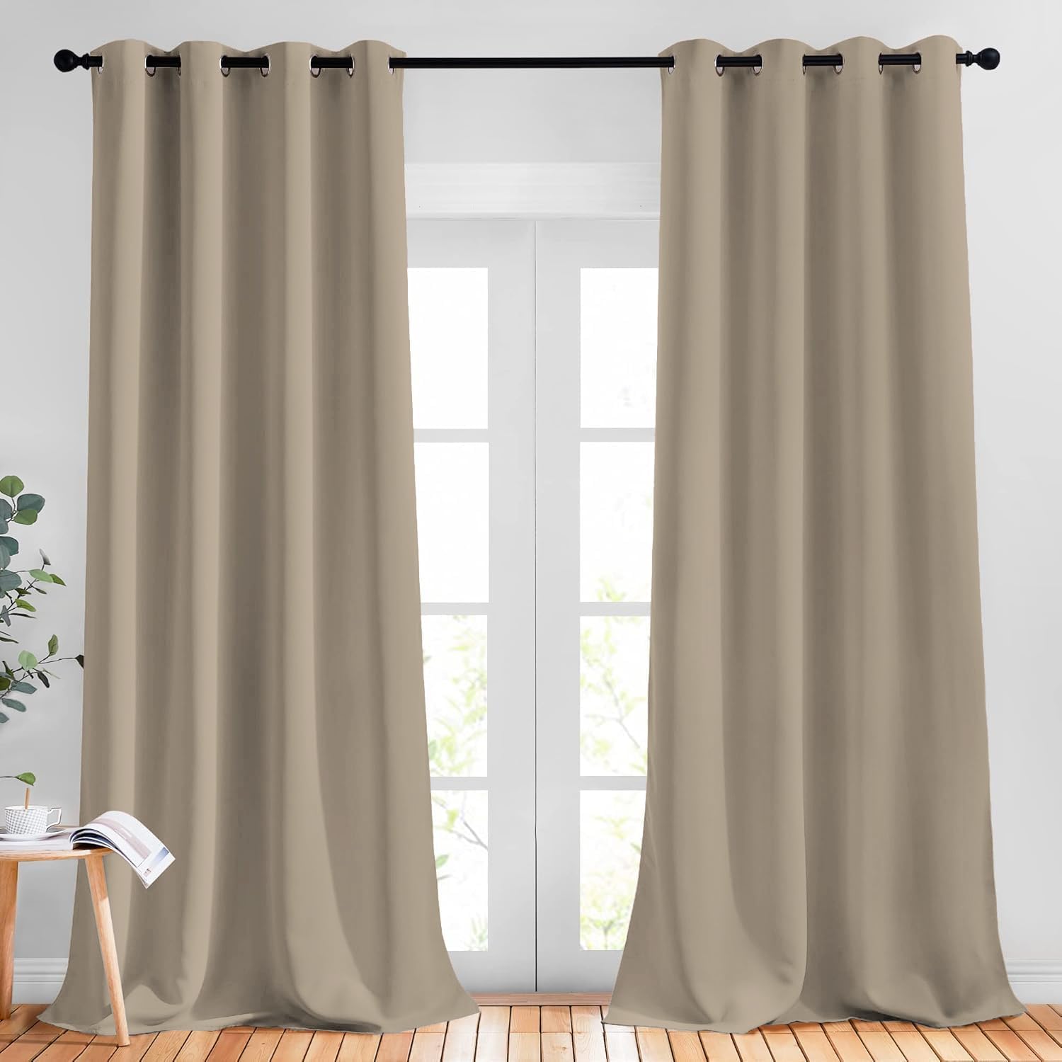 NICETOWN Taupe Blackout Curtains for Living Room, Grommet Thermal Insulated Room Darkening Window Treatments Sound Proof Drapes for Bedroom/Boys Room, 2 Panels, W52 x L90