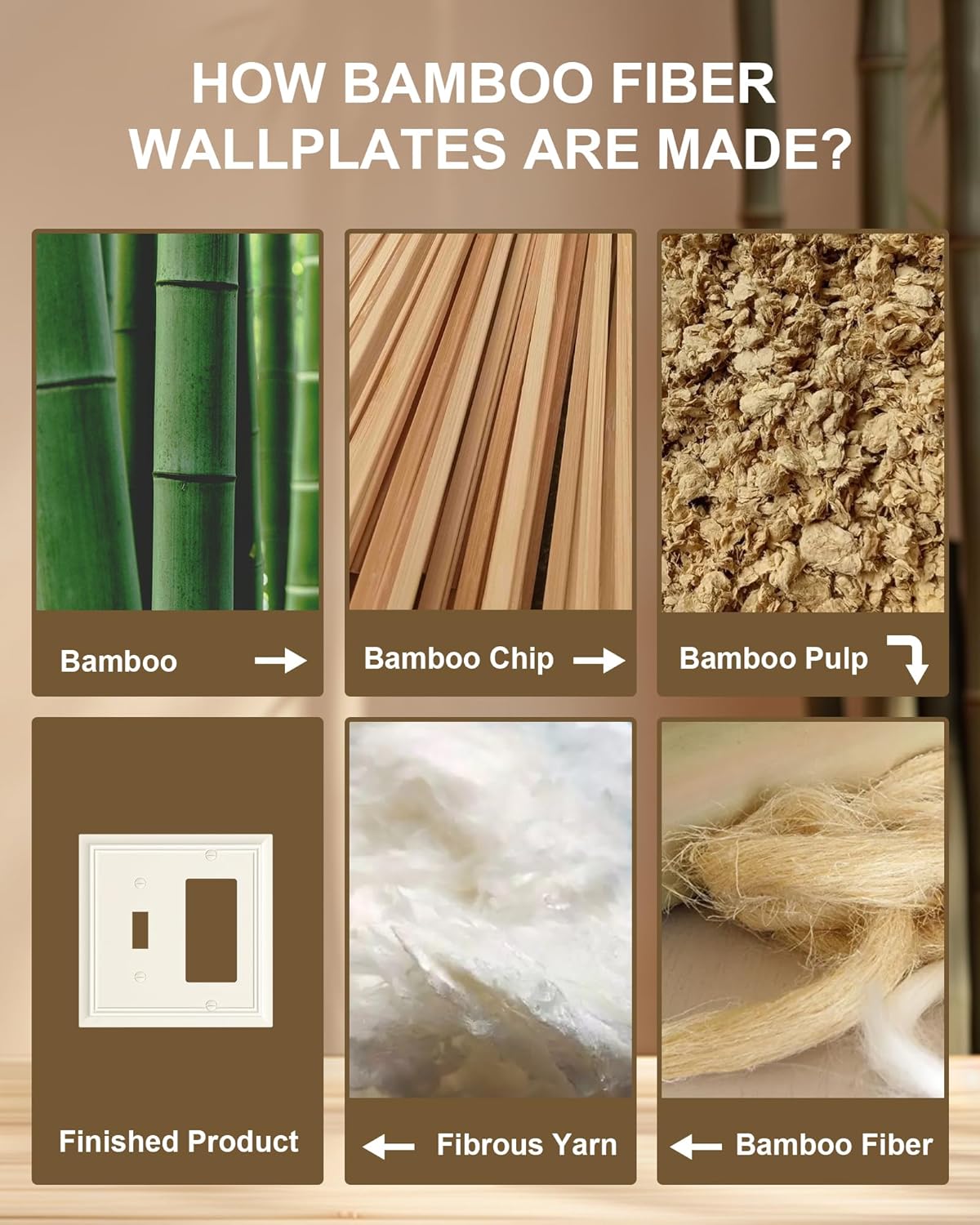 - Natural Bamboo Fiber Material - The Combo Toggle/Decorator switch plate covers are made from sustainable and environmentally friendly bamboo fiber, much thicker and more robust than plastic covers, easier to clean. Resistant to heat, moisture, and corrosion, ensuring it remain a stunning addition to your home for years to come.