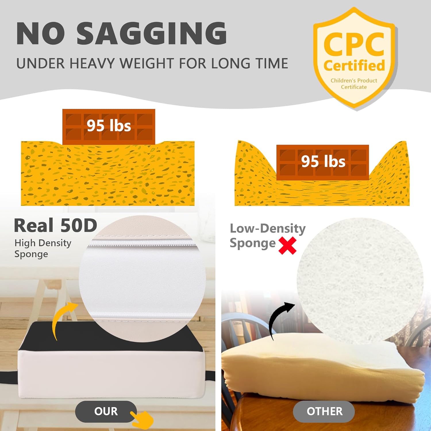 - 【Stain-Proof & Easy To Clean】The cover of this booster seat is crafted with PU leather material, which effectively acts as a barrier against stains. Whether it's spills from drinks or food, you won't have to worry about them seeping into the sponge. Moreover, cleaning this seat is a breeze. Just a quick wipe with a damp cloth and it's as good as new. This makes maintaining the seat's cleanliness effortless and saves you precious time and effort.