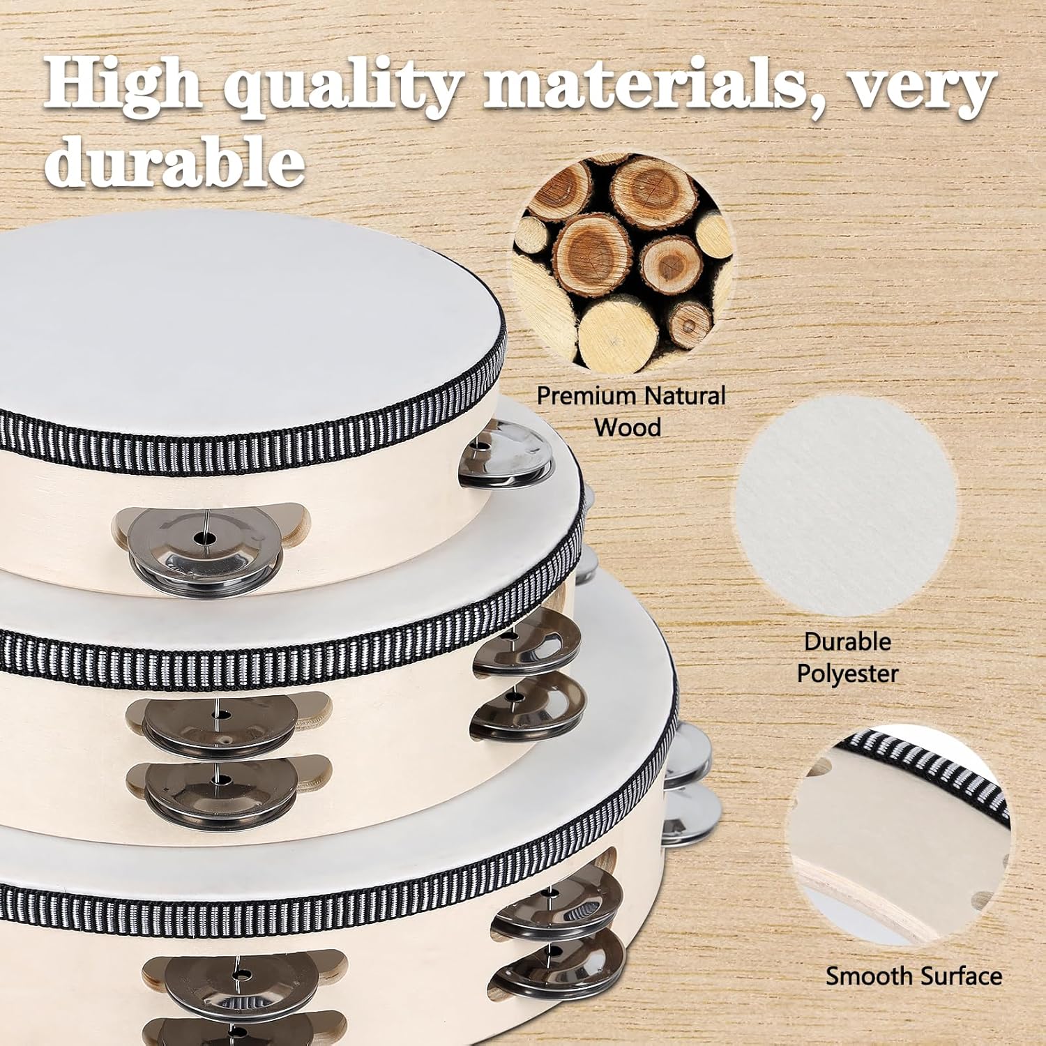 - [Quality Material]Our tambourine, crafted from premium wood with a smooth surface, ensures durability against breakage and fading. The polyester drum heads, known for their longevity, offer an extended lifespan compared to traditional options.