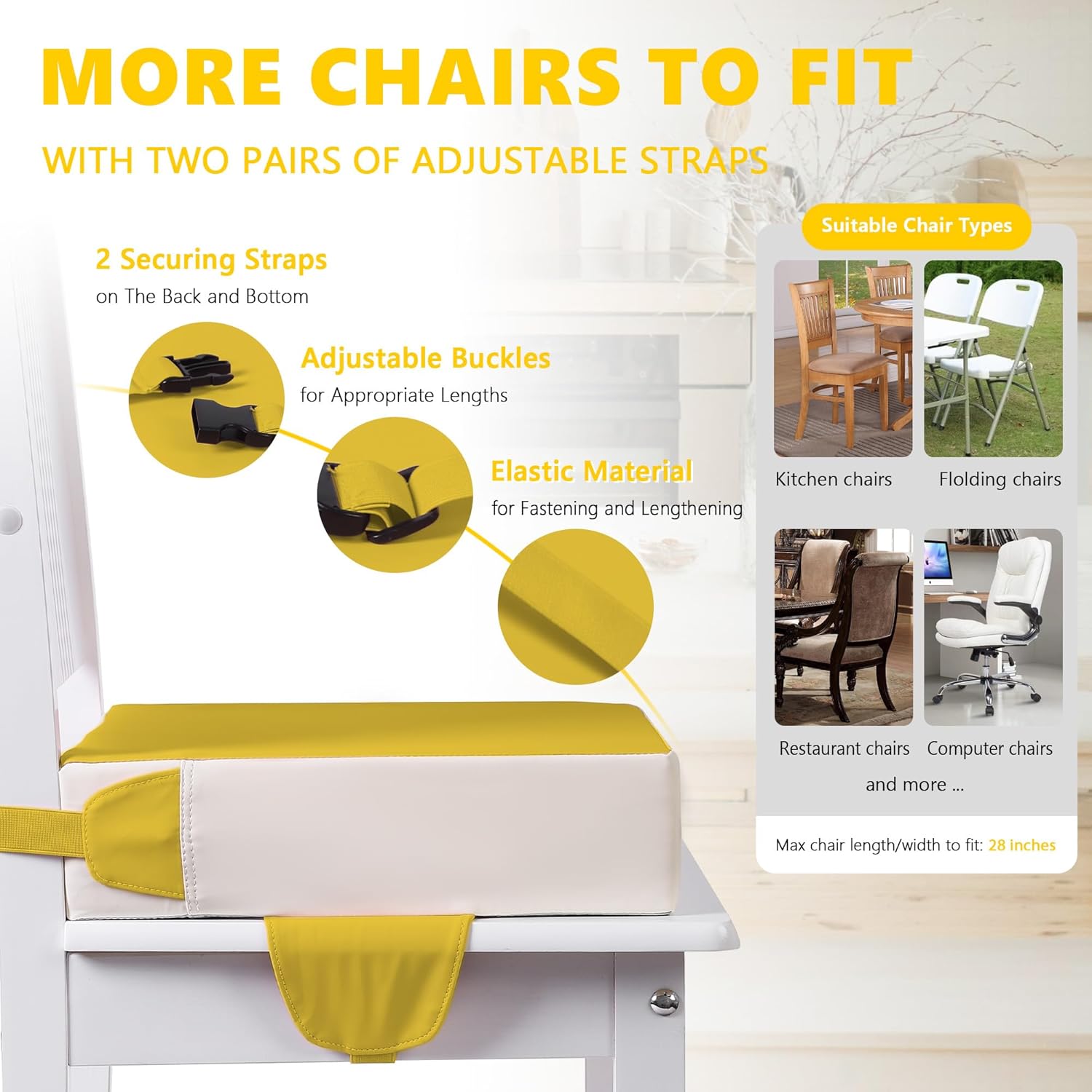 - 【Stain-Proof & Easy To Clean】The cover of this booster seat is crafted with PU leather material, which effectively acts as a barrier against stains. Whether it's spills from drinks or food, you won't have to worry about them seeping into the sponge. Moreover, cleaning this seat is a breeze. Just a quick wipe with a damp cloth and it's as good as new. This makes maintaining the seat's cleanliness effortless and saves you precious time and effort.